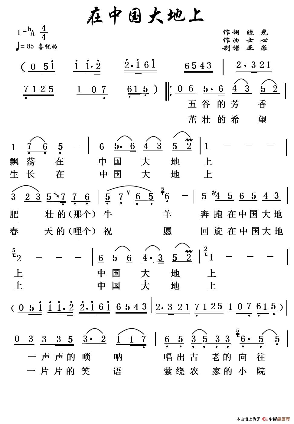 关于《在中国大地上》曲谱的评论