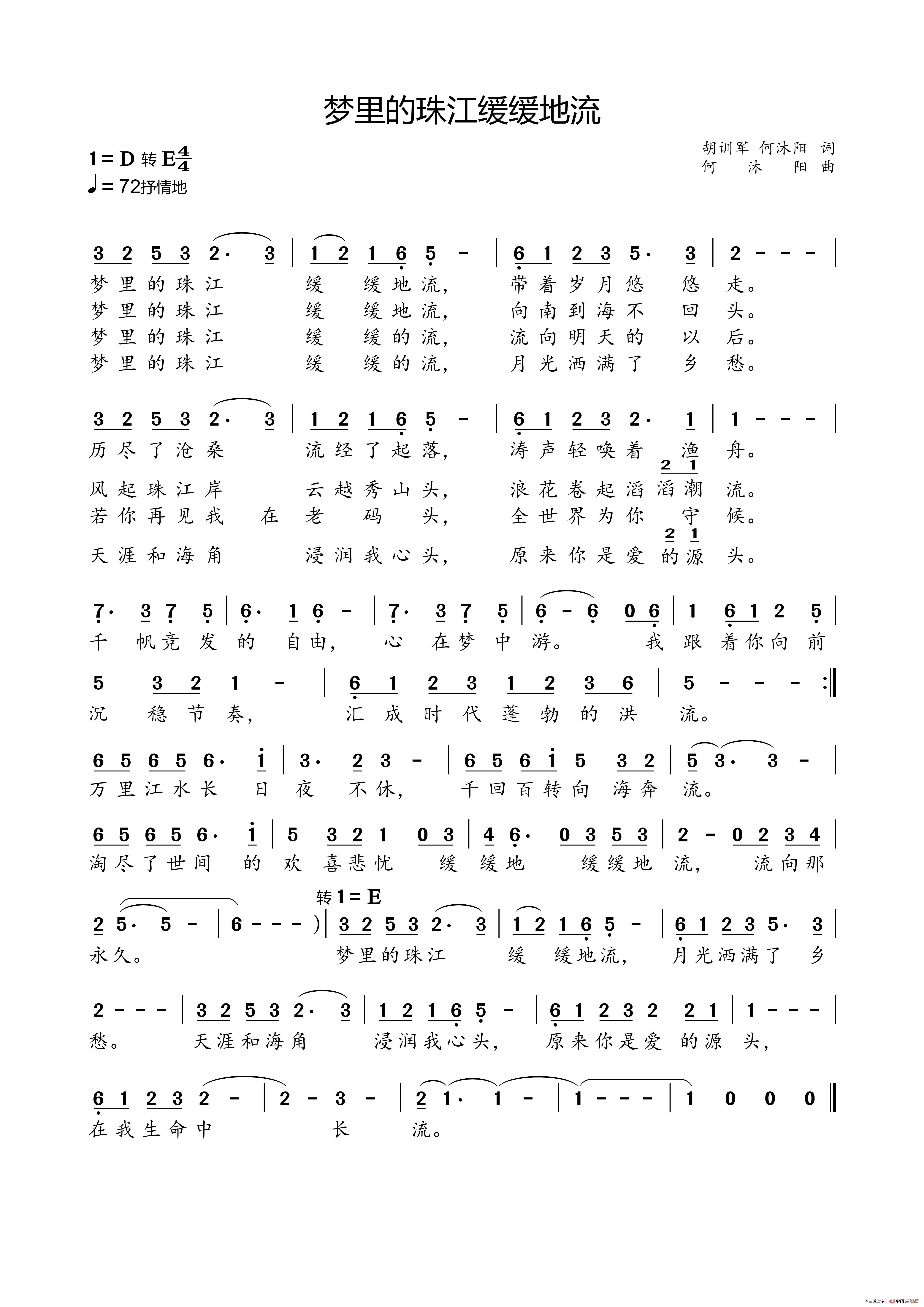 关于《梦里的珠江缓缓的流》曲谱的评论