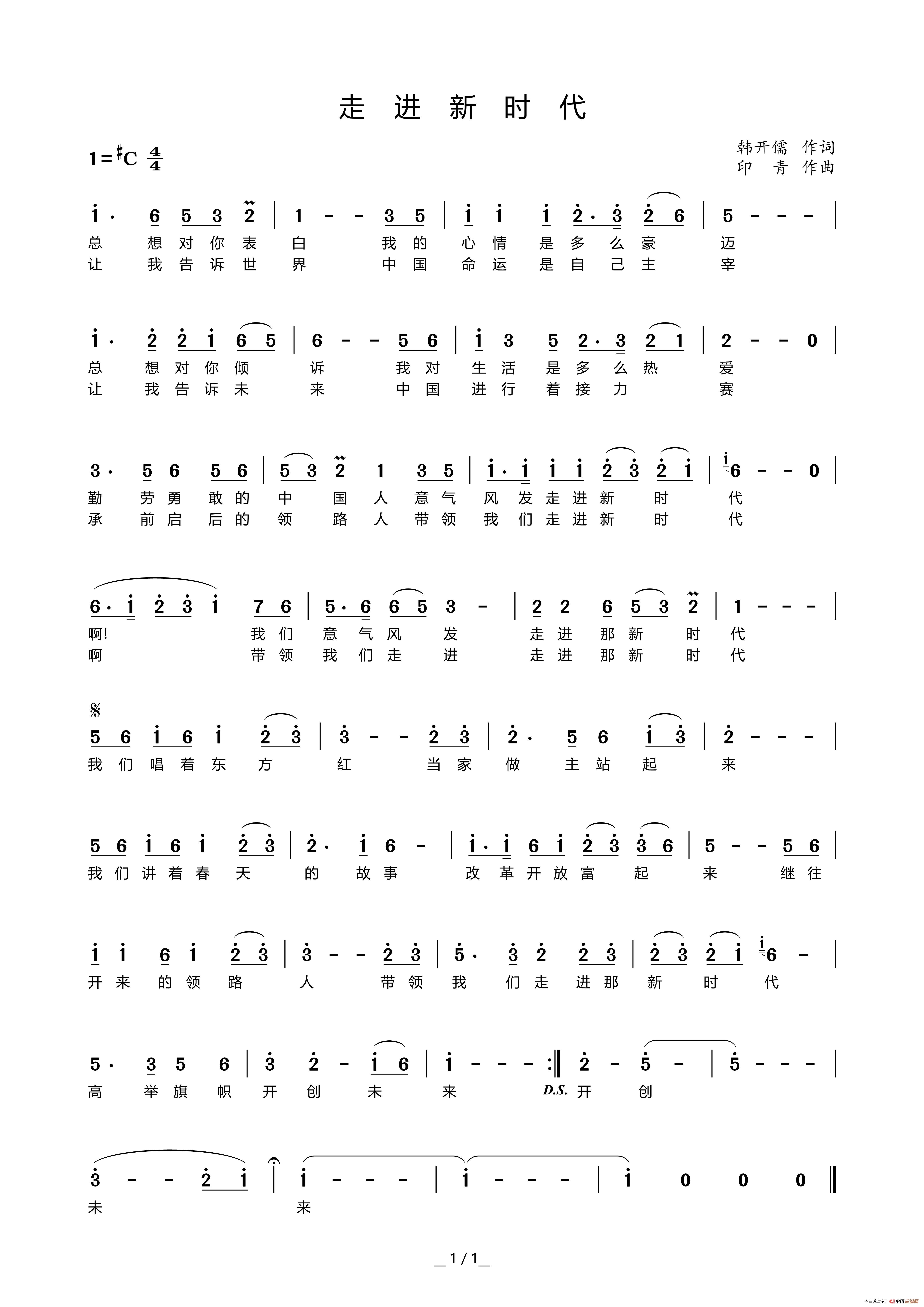 关于《走进新时代》曲谱的评论