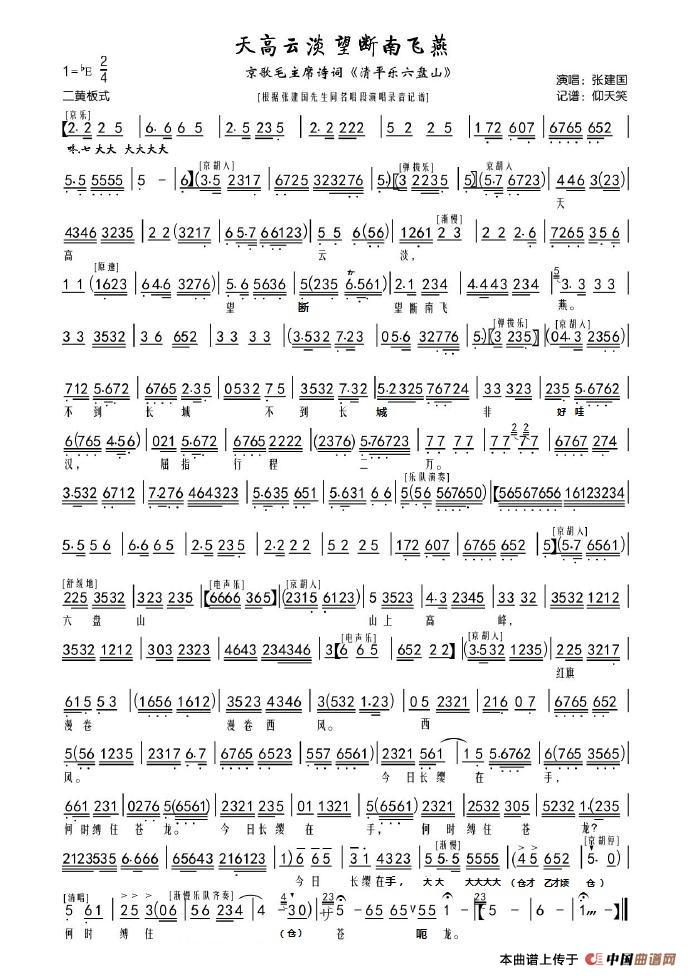 关于《天高云淡望断南飞雁》曲谱的评论