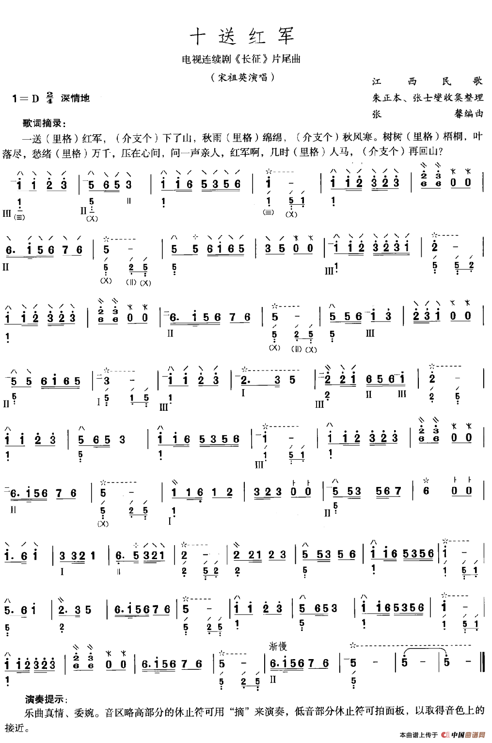 关于《十送红军》曲谱的评论