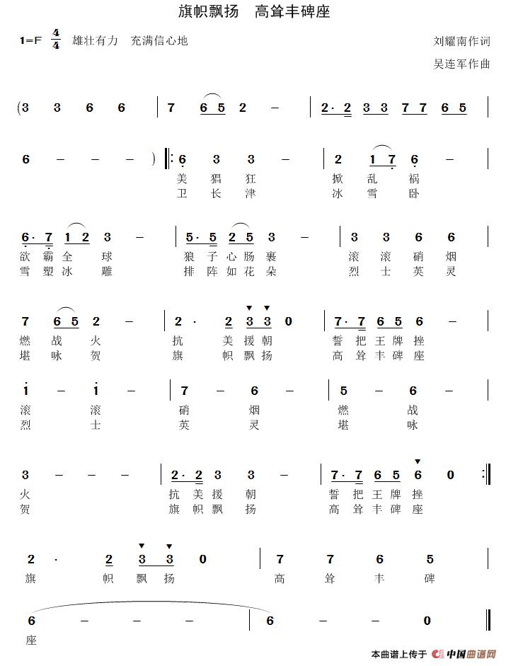 关于《旗帜飘扬高耸丰碑座》曲谱的评论