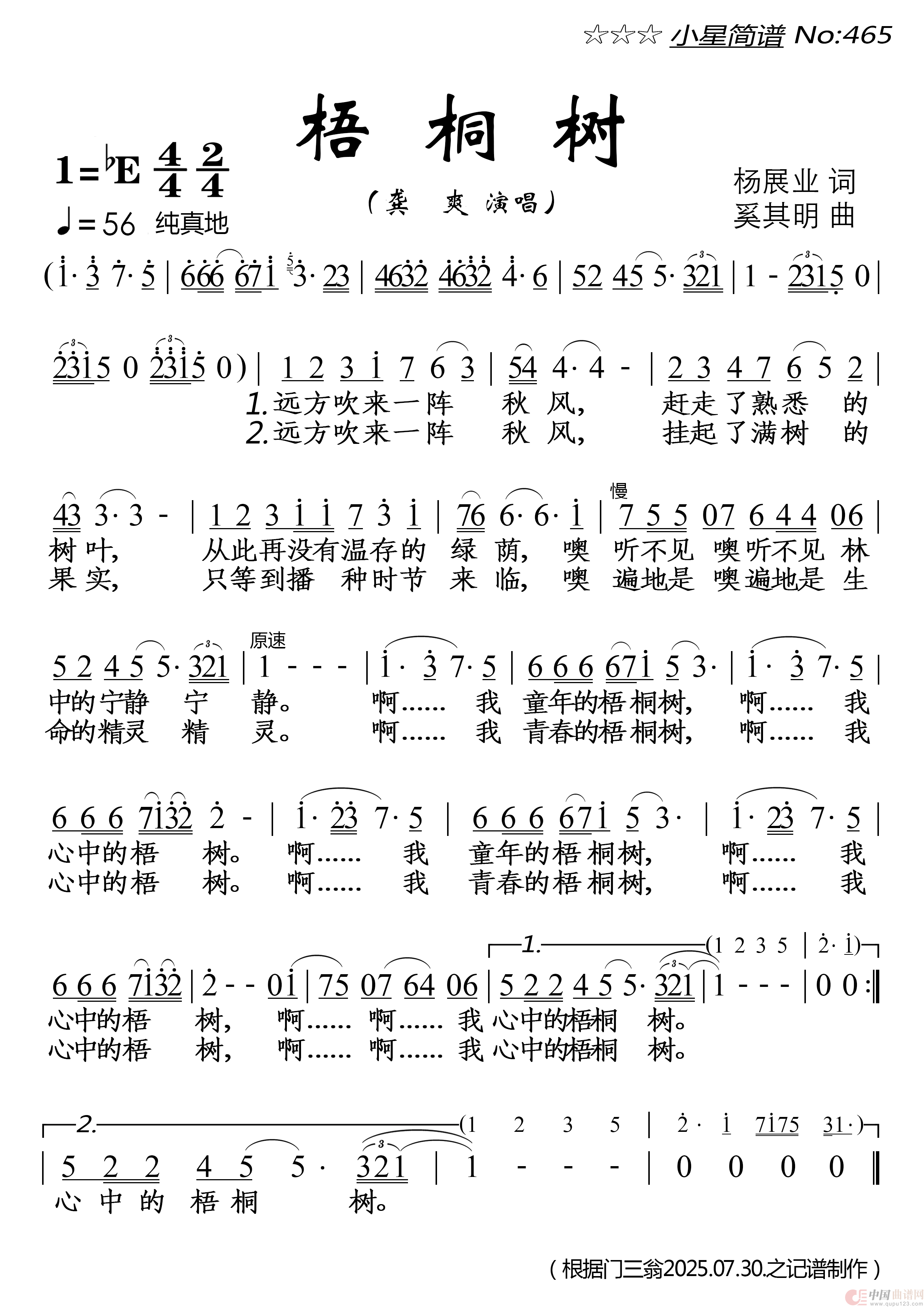 关于《梧桐树》曲谱的评论