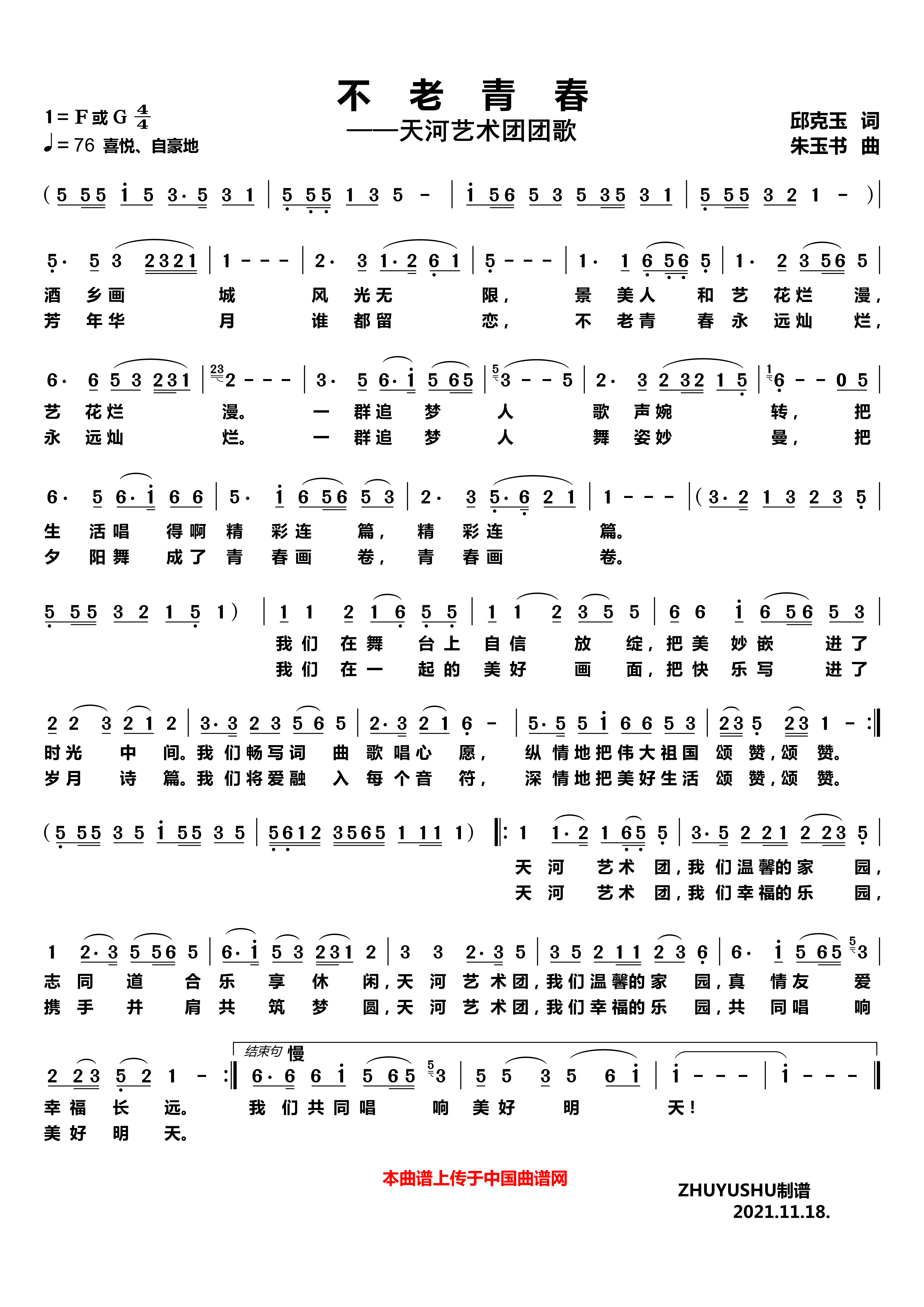 关于《不老青春——天河艺术团团歌》曲谱的评论