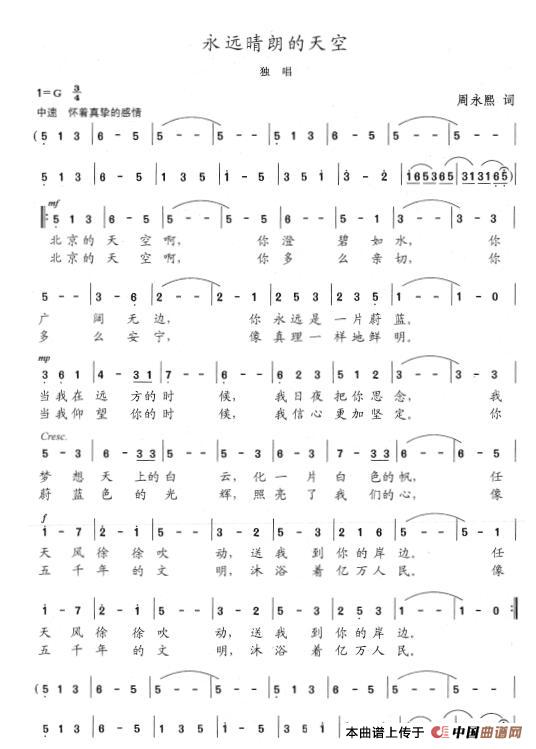 关于《永远晴朗的天空》曲谱的评论