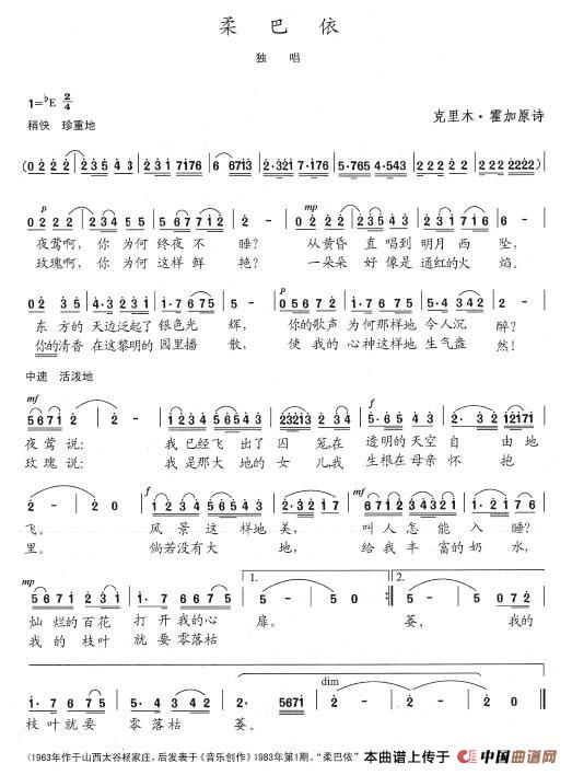 关于《柔巴依》曲谱的评论