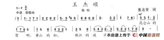 关于《王杰颂》曲谱的评论