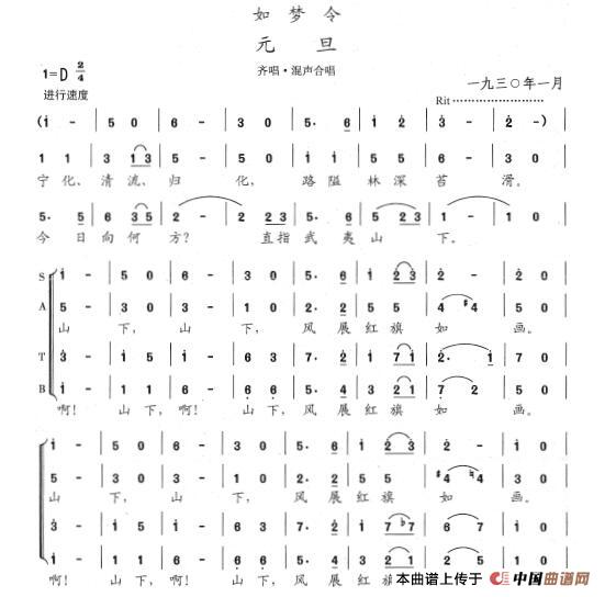 提示:在曲谱图片上单击右键,选择"图片另存为..."即可将曲谱保存到您的电脑中,打印时候可将图片插入到WORD中,调整合适大小打印即可。