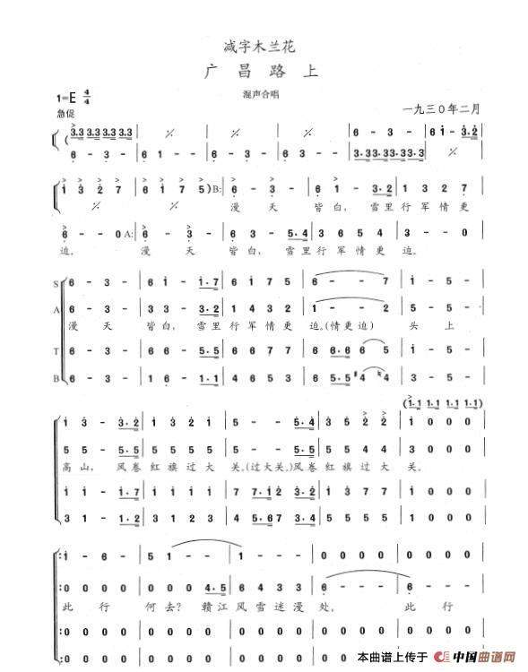 关于《减字木兰花·广昌路上》曲谱的评论