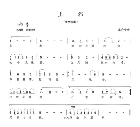 关于《上邪》曲谱的评论