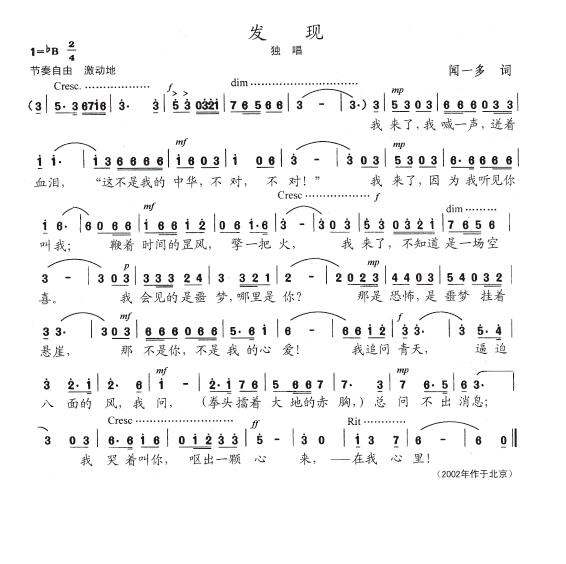 作词:闻一多   作曲:陈志昂   来源:谱友沉香21上传   上传:沉香21   日期:2021-11-01   浏览次数: