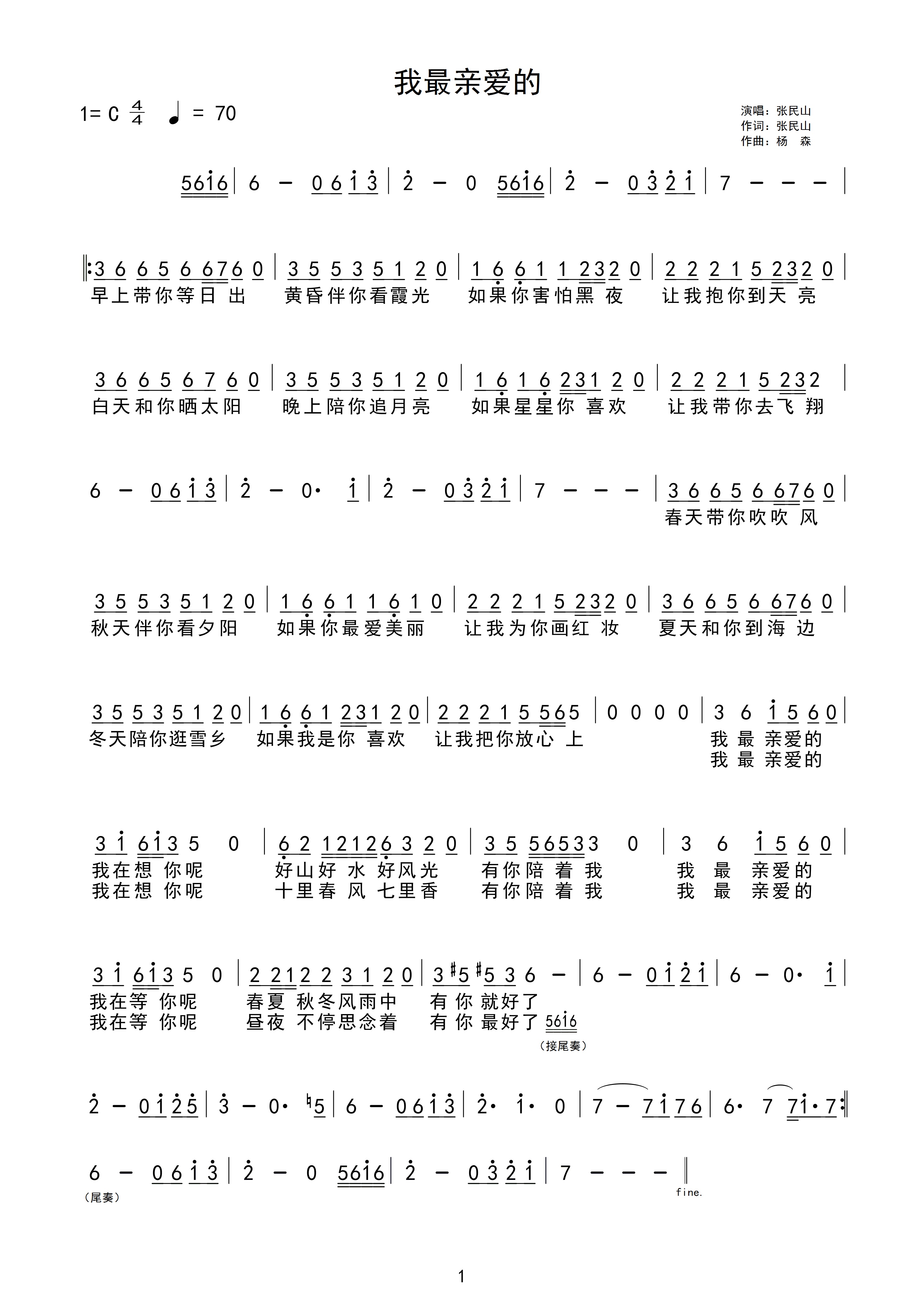 关于《我最亲爱的》曲谱的评论