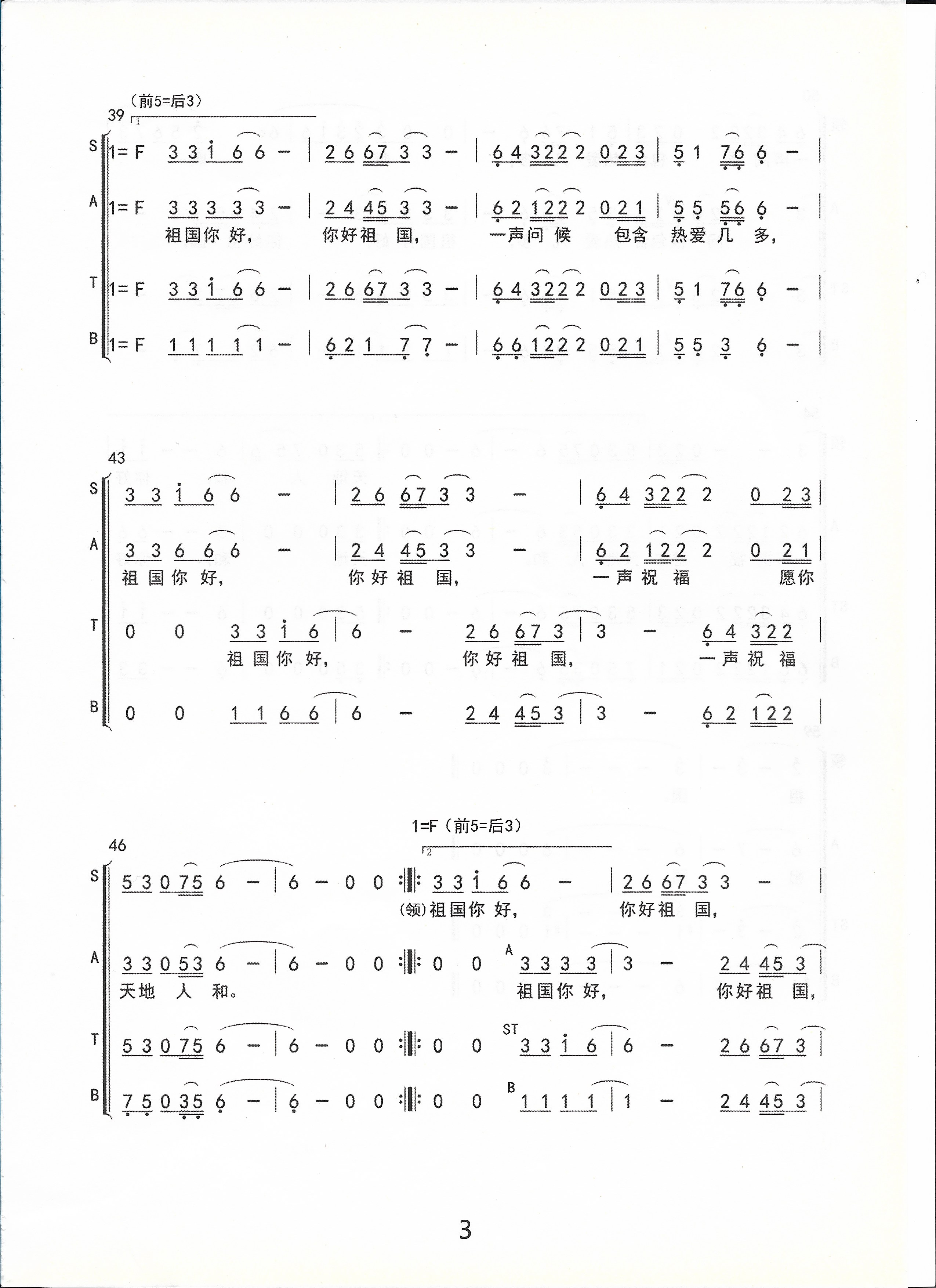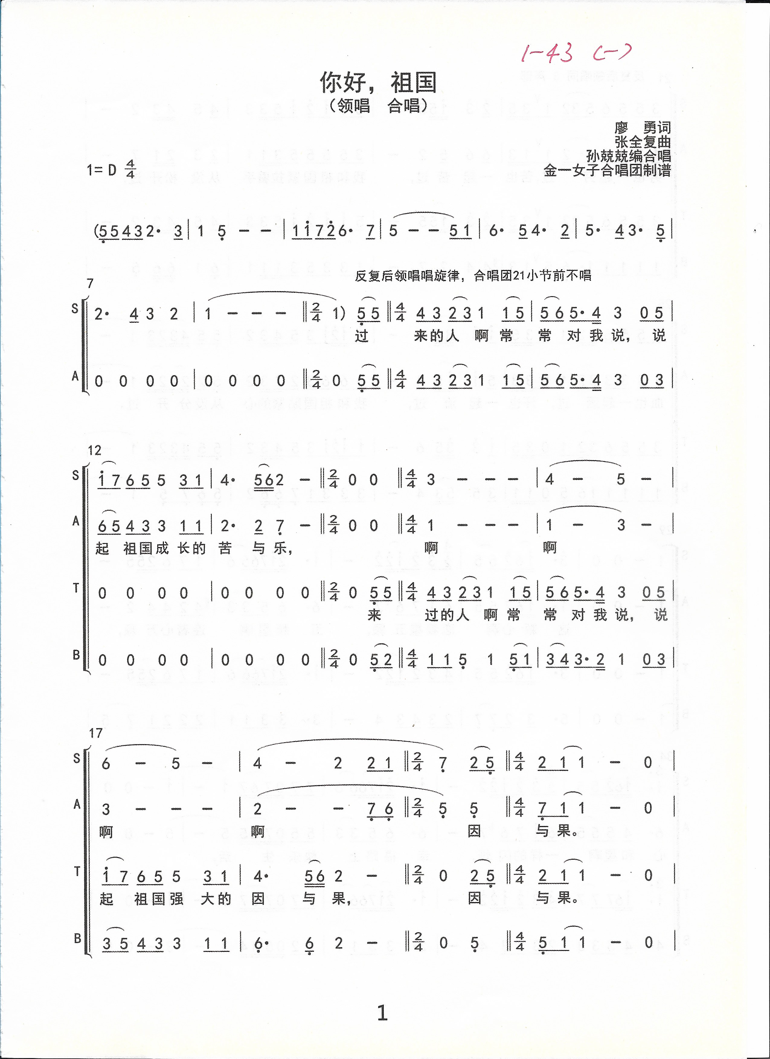 关于《你好,祖国》曲谱的评论