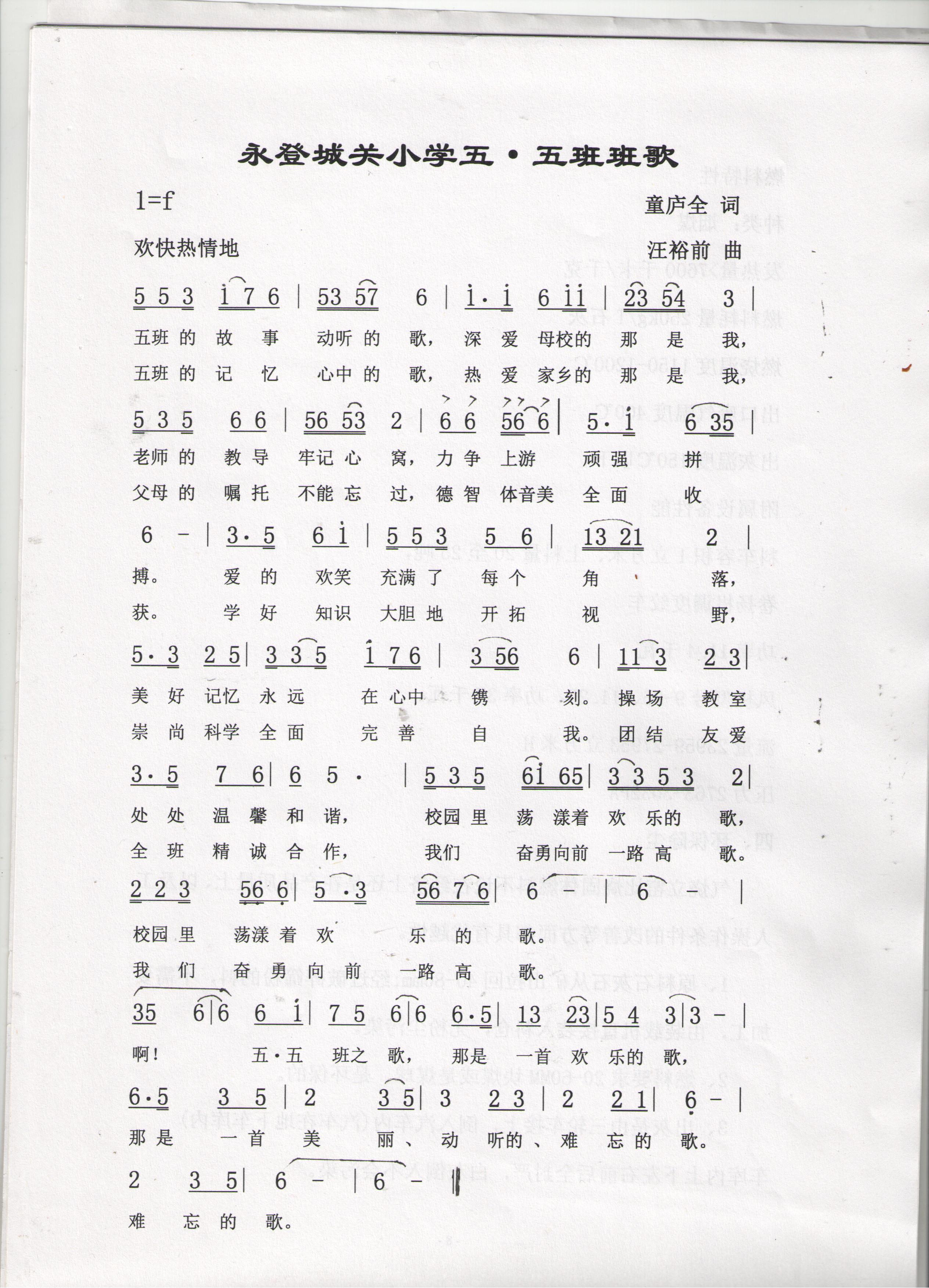 关于《永登城关小学五.五班班歌》曲谱的评论