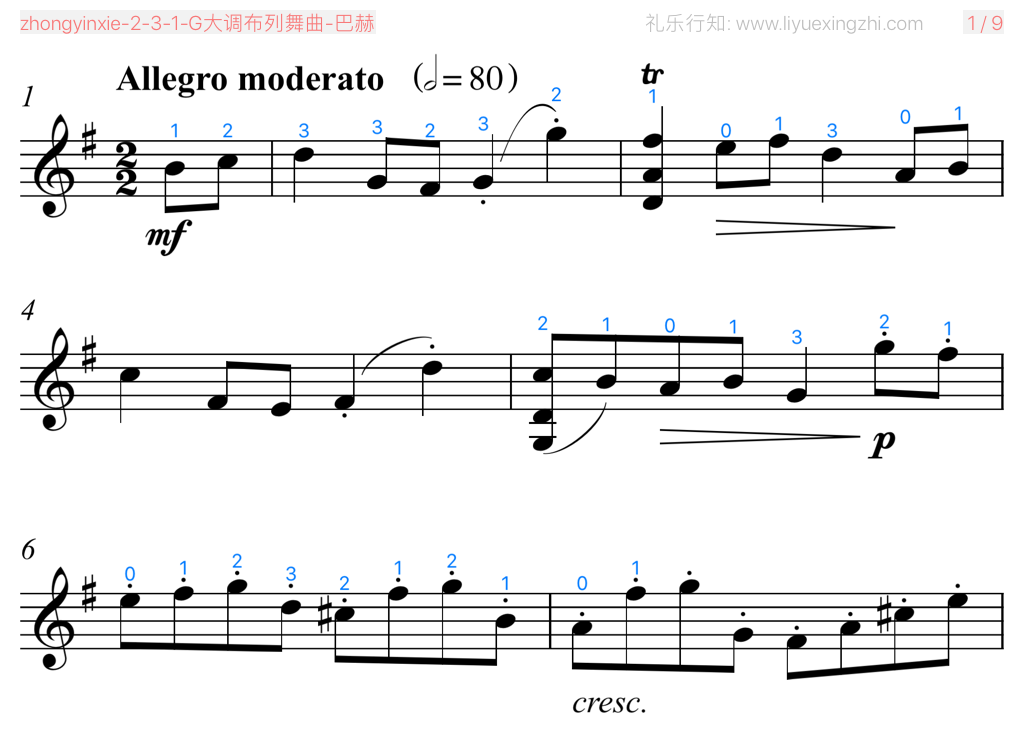 关于《G大调布列舞曲-巴赫》曲谱的评论