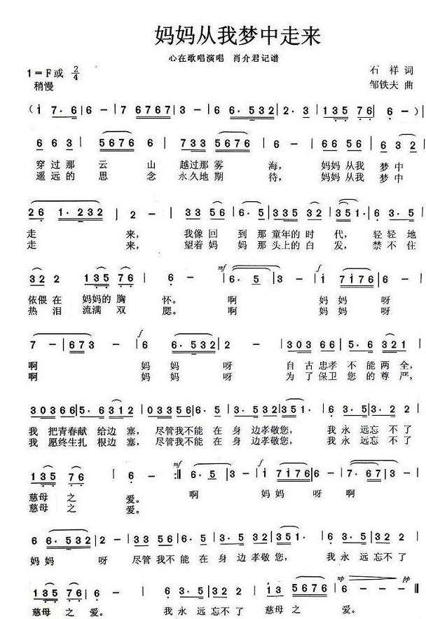 关于《妈妈从我梦中走来》曲谱的评论