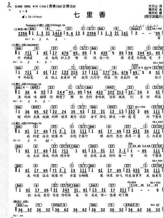 关于《七里香》曲谱的评论