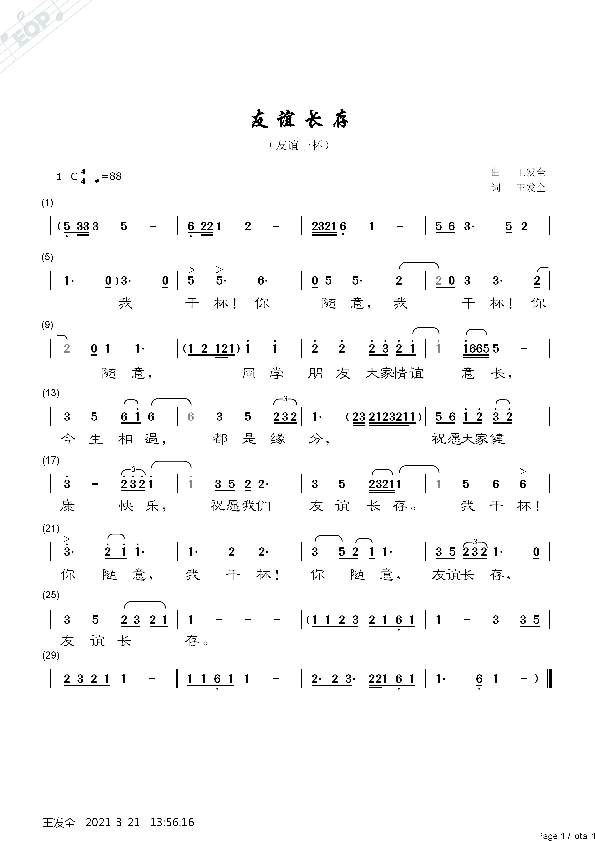 当前位置: 首页 谱友园地 谱友上传 友谊长存(友谊干杯)