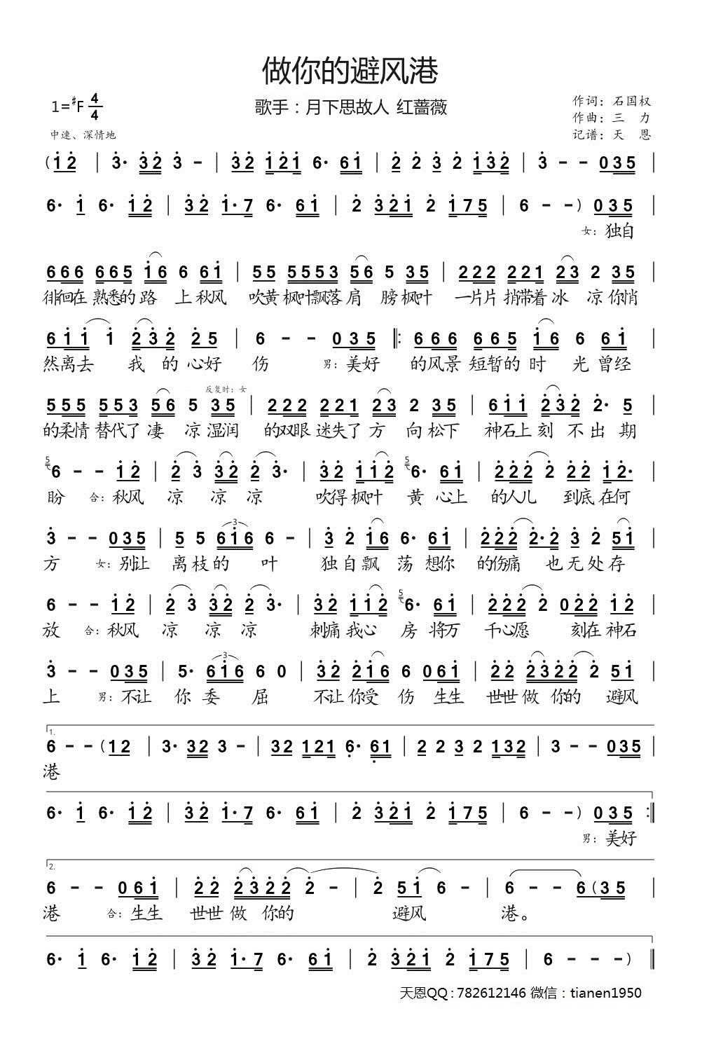 关于《做你的避风港》曲谱的评论