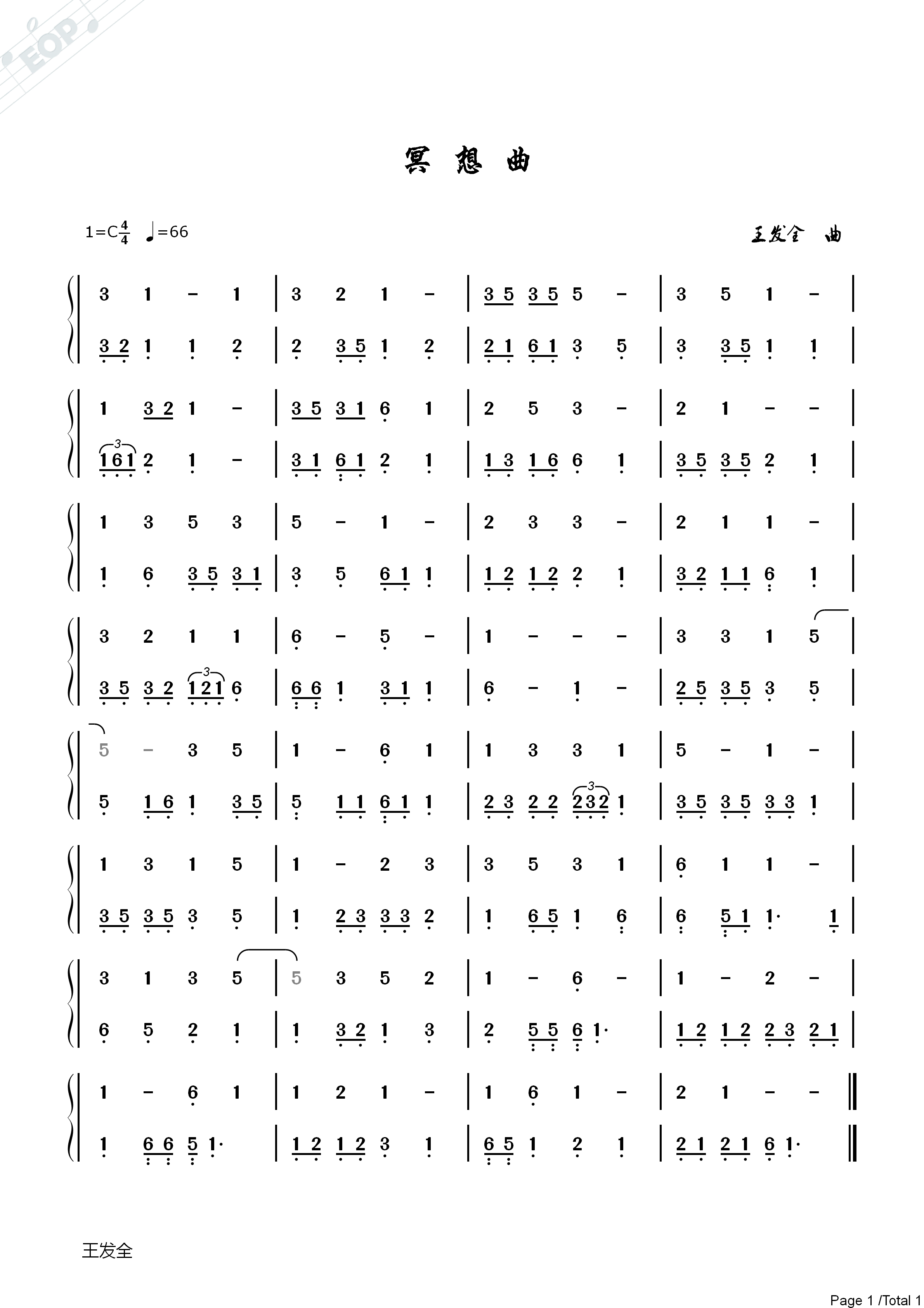 提示:在曲谱图片上单击右键,选择“图片另存为...”即可将曲谱保存到您的电脑中,打印时候可将图片插入到WORD中,调整合适大小打印即可。