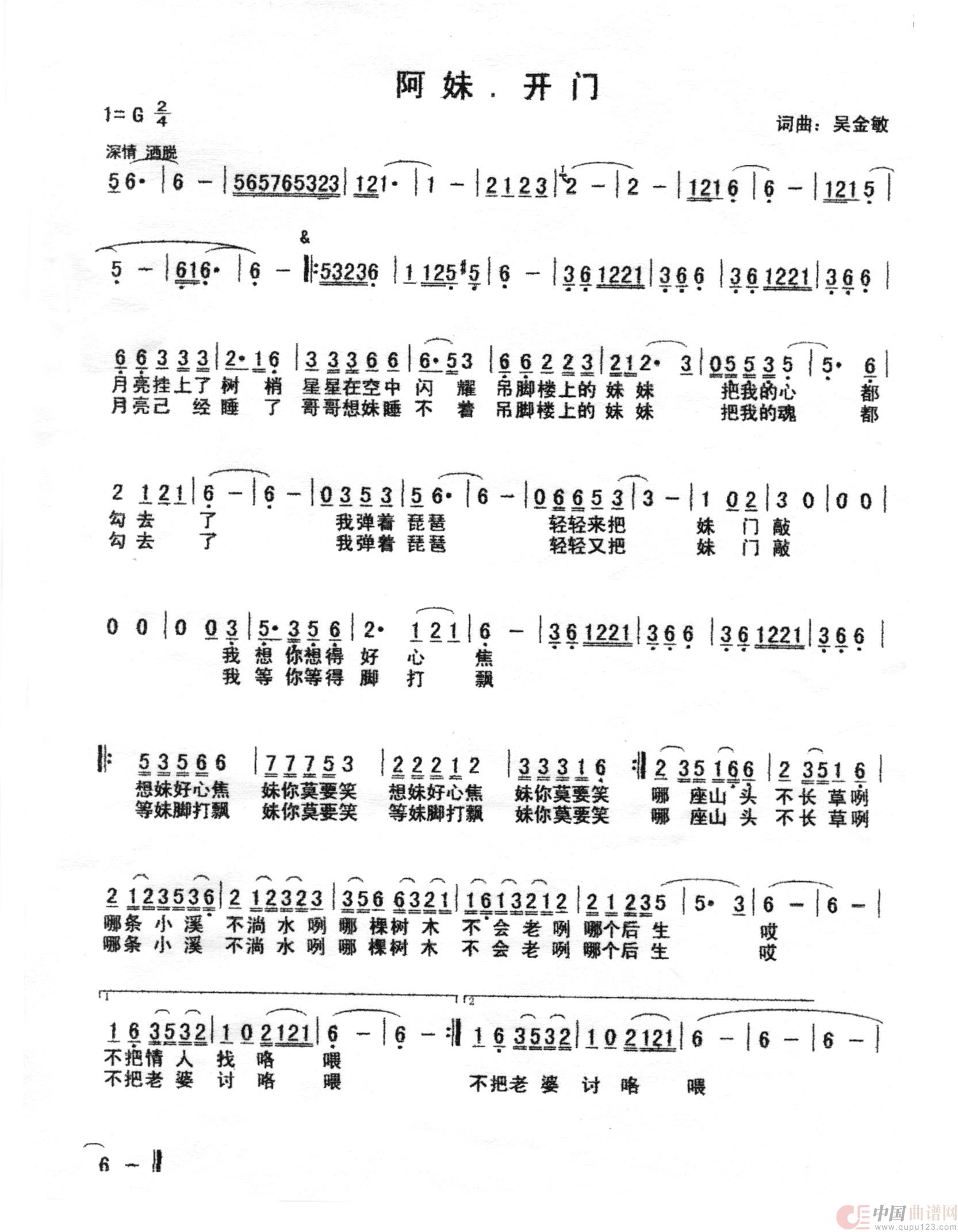 关于《阿妹开门》曲谱的评论