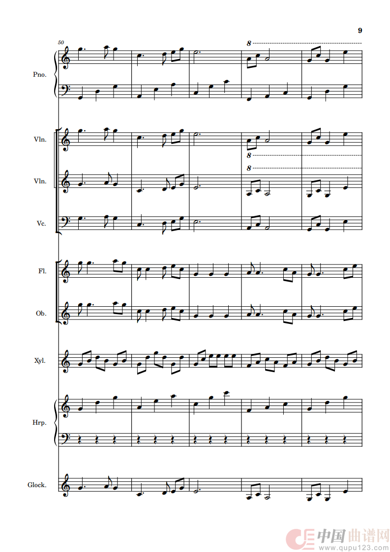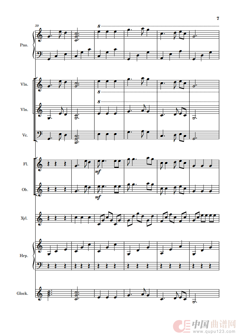 提示:在曲谱图片上单击右键,选择“图片另存为...”即可将曲谱保存到您的电脑中,打印时候可将图片插入到WORD中,调整合适大小打印即可。