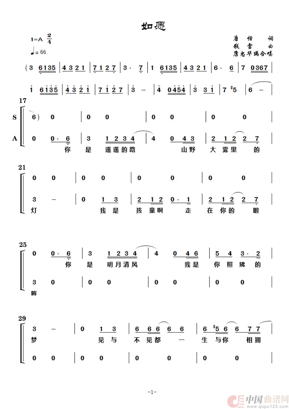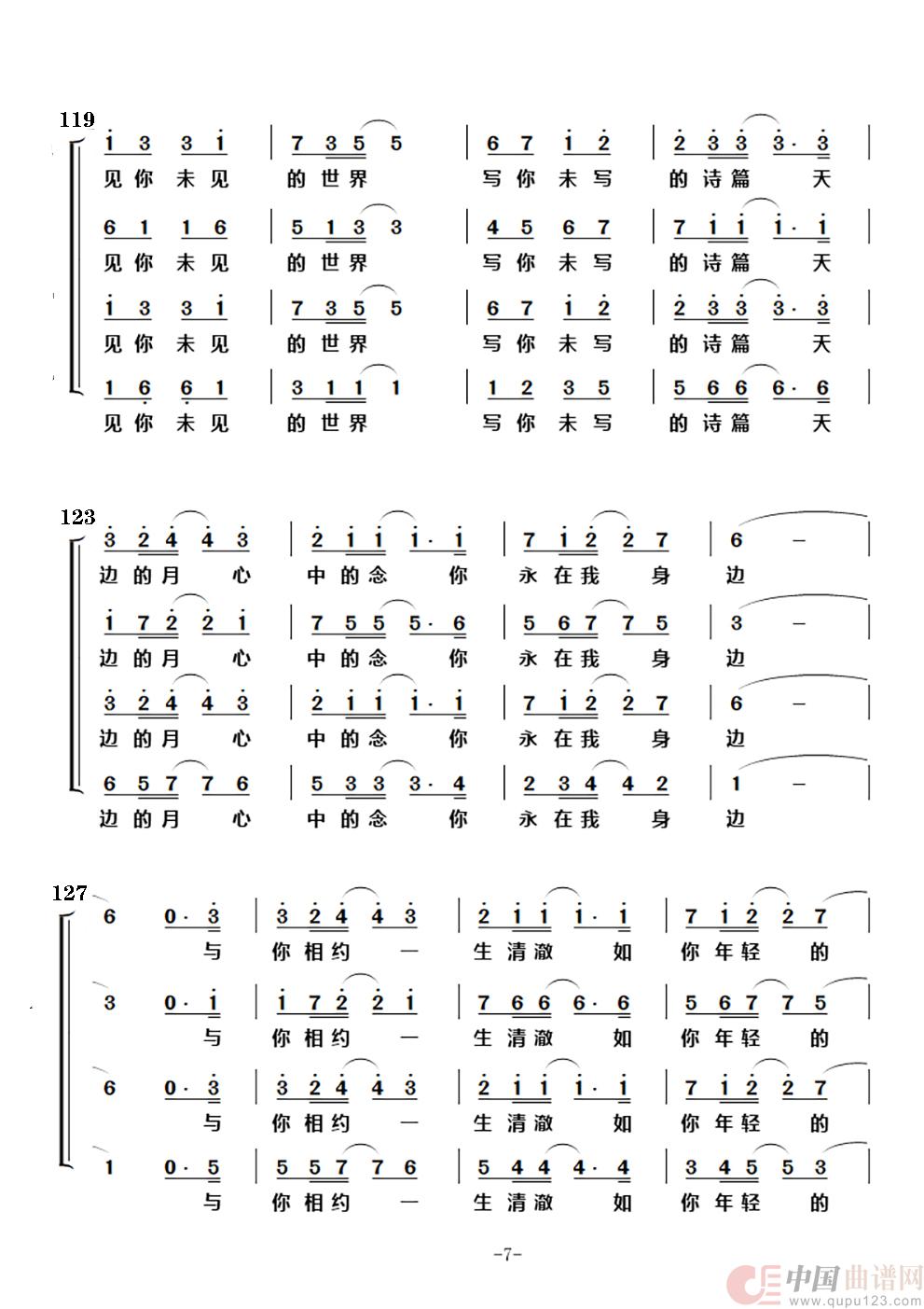 提示:在曲谱图片上单击右键,选择“图片另存为...”即可将曲谱保存到您的电脑中,打印时候可将图片插入到WORD中,调整合适大小打印即可。