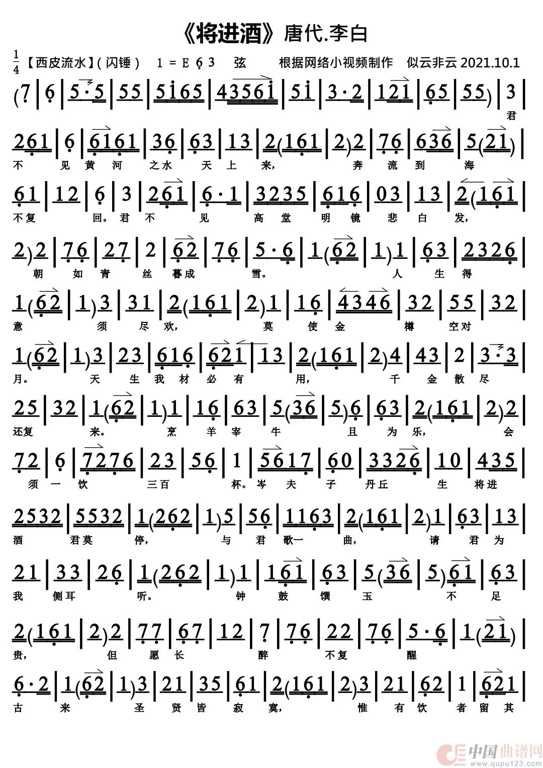 关于《将进酒》曲谱的评论