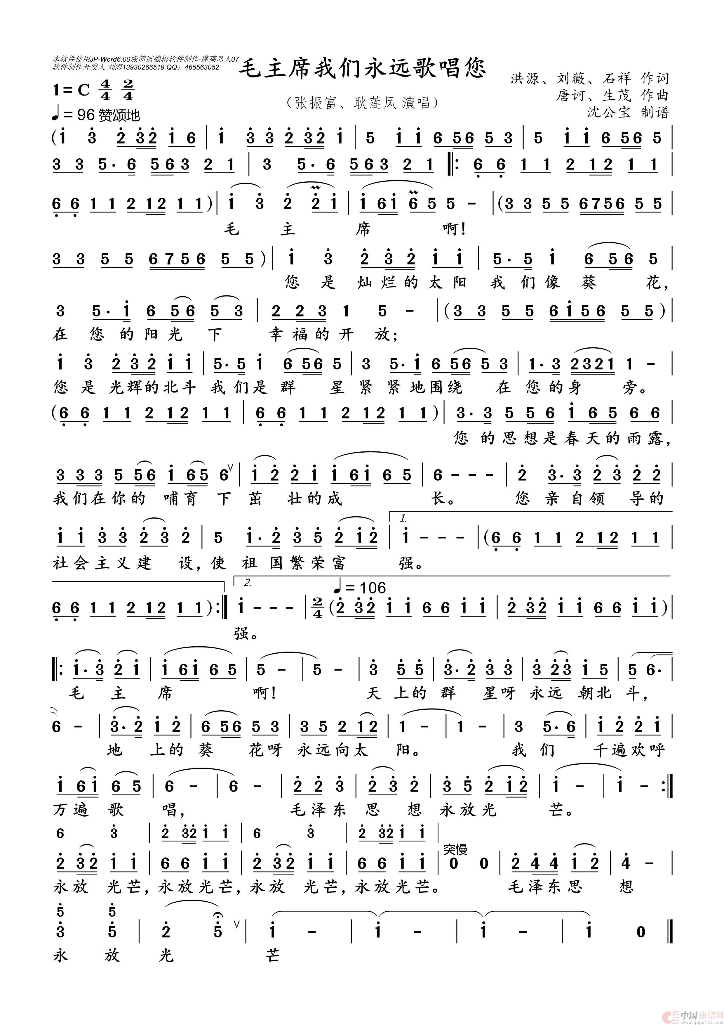 关于《毛主席我们永远歌唱您》曲谱的评论