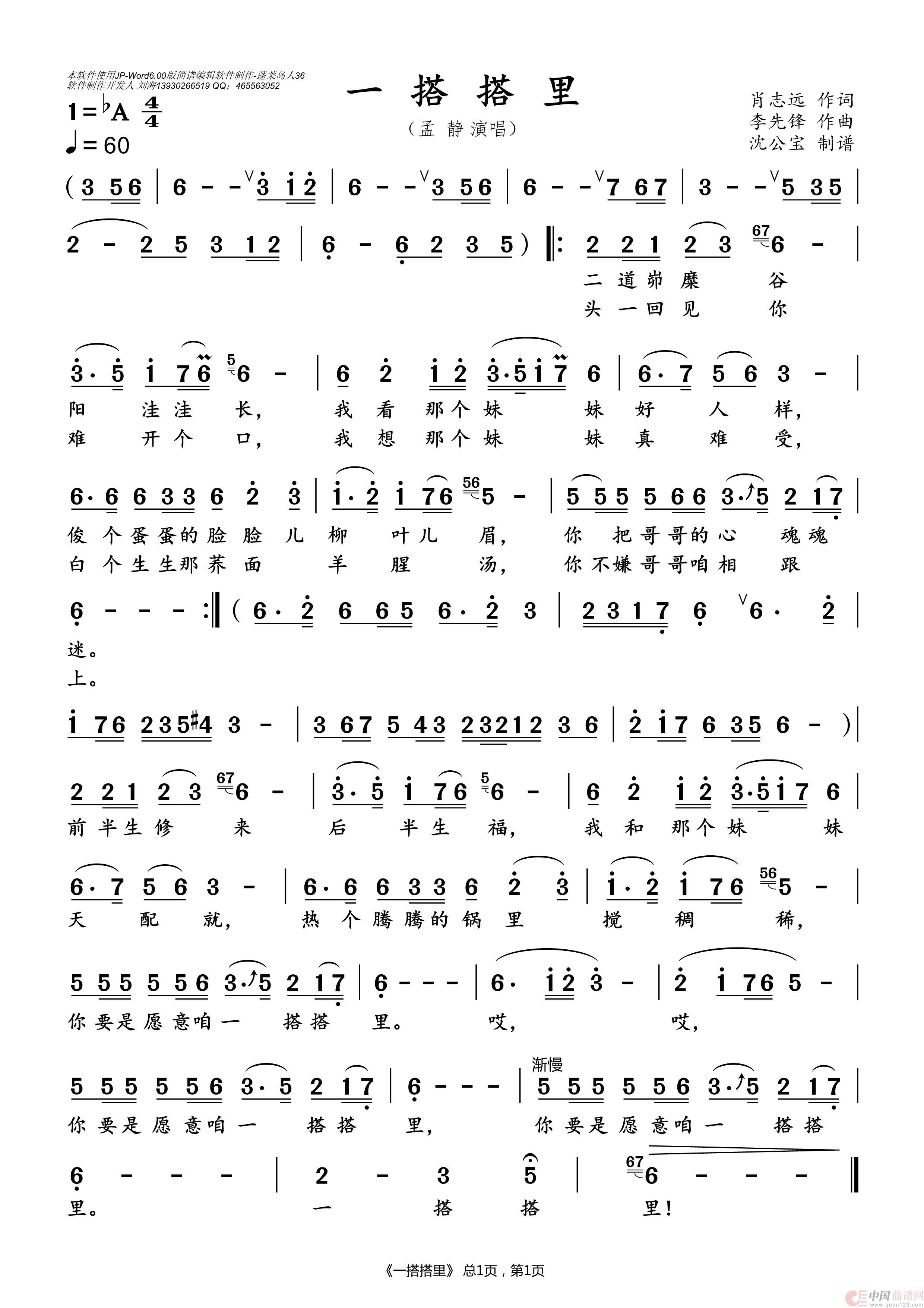 关于《一搭搭里》曲谱的评论
