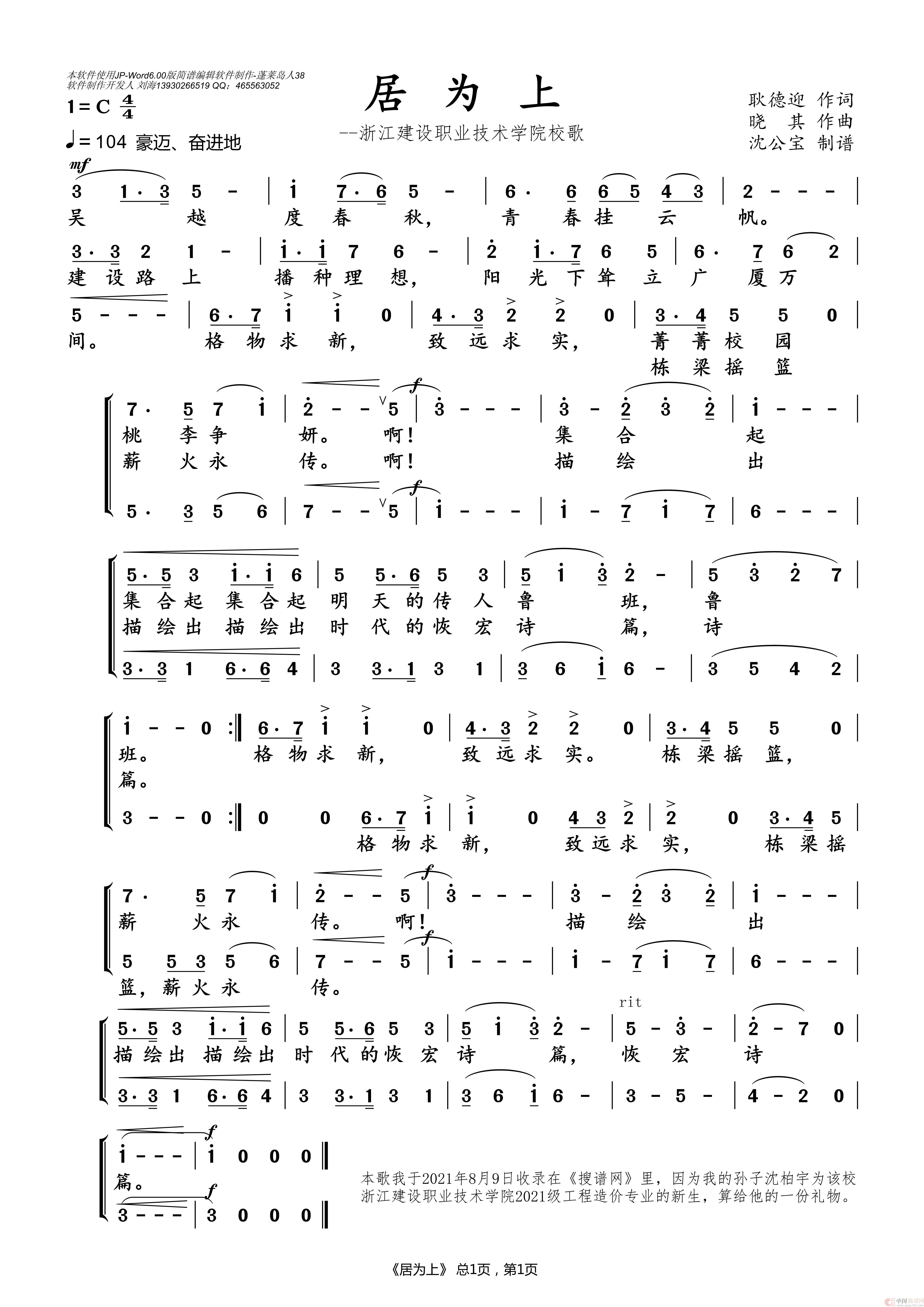 居为上(--浙江建设职业技术学院校歌)
