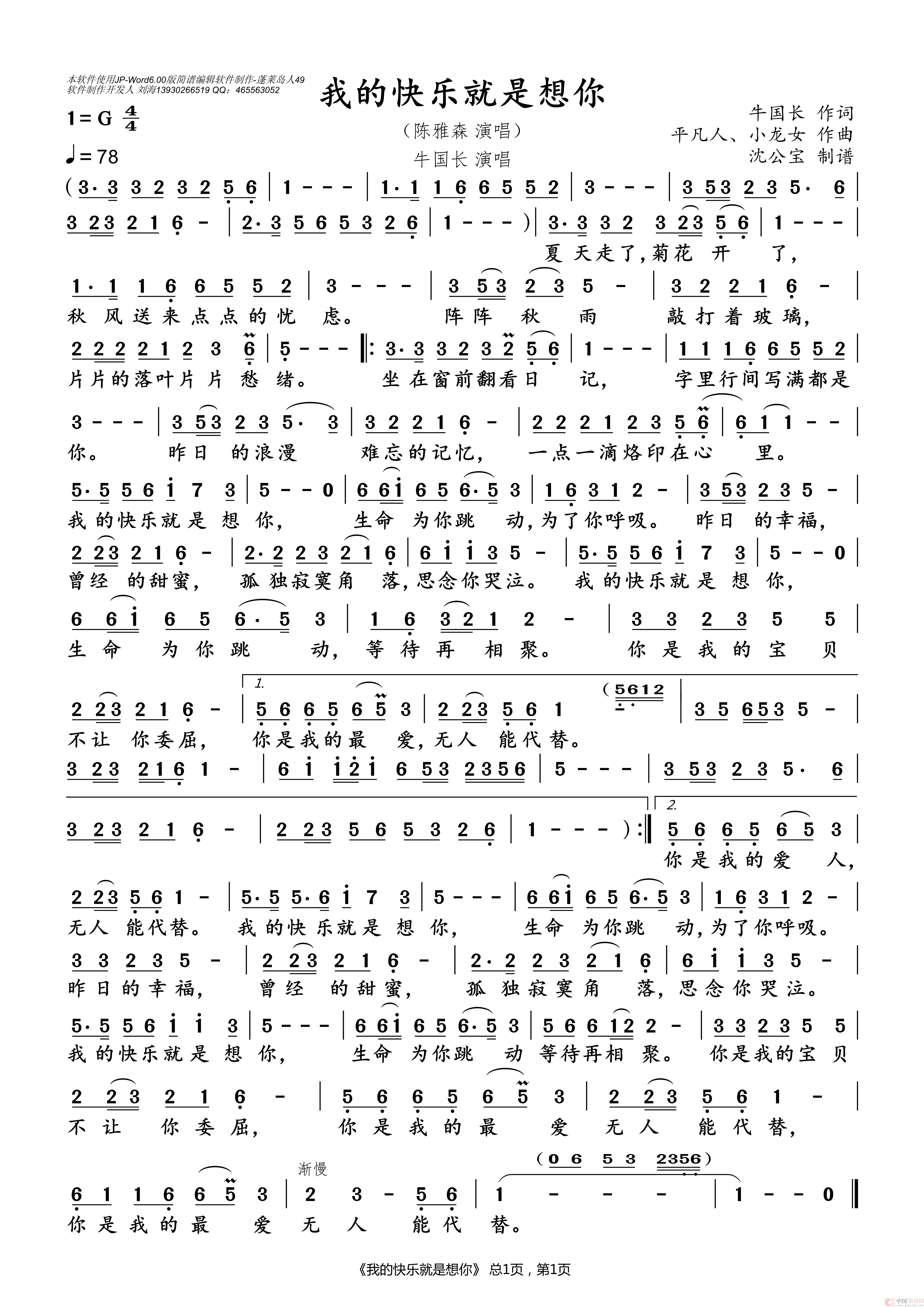 我的快乐就是想你(牛国长词 ...