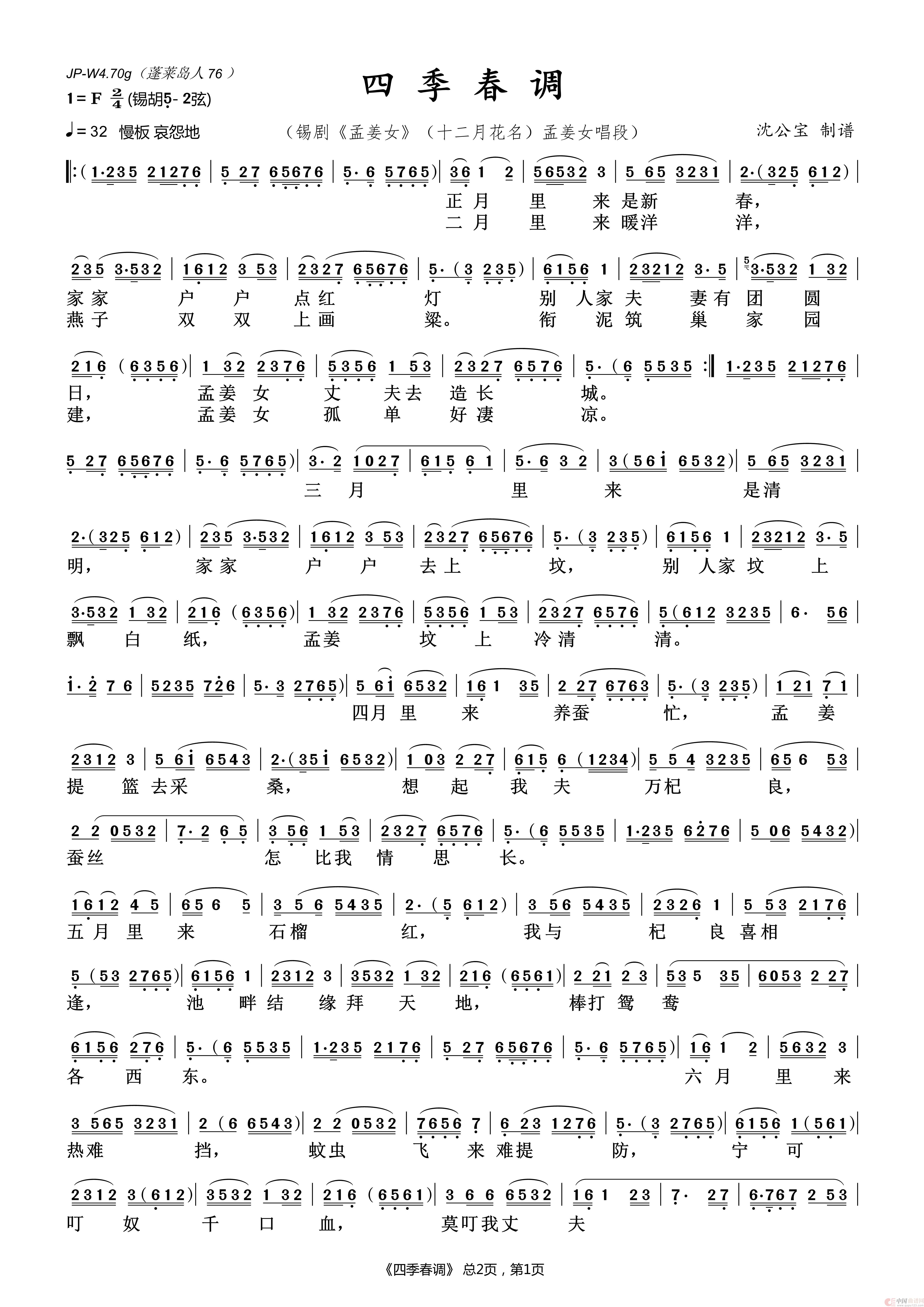 来源:沈公宝 制谱 上传:普通一兵
