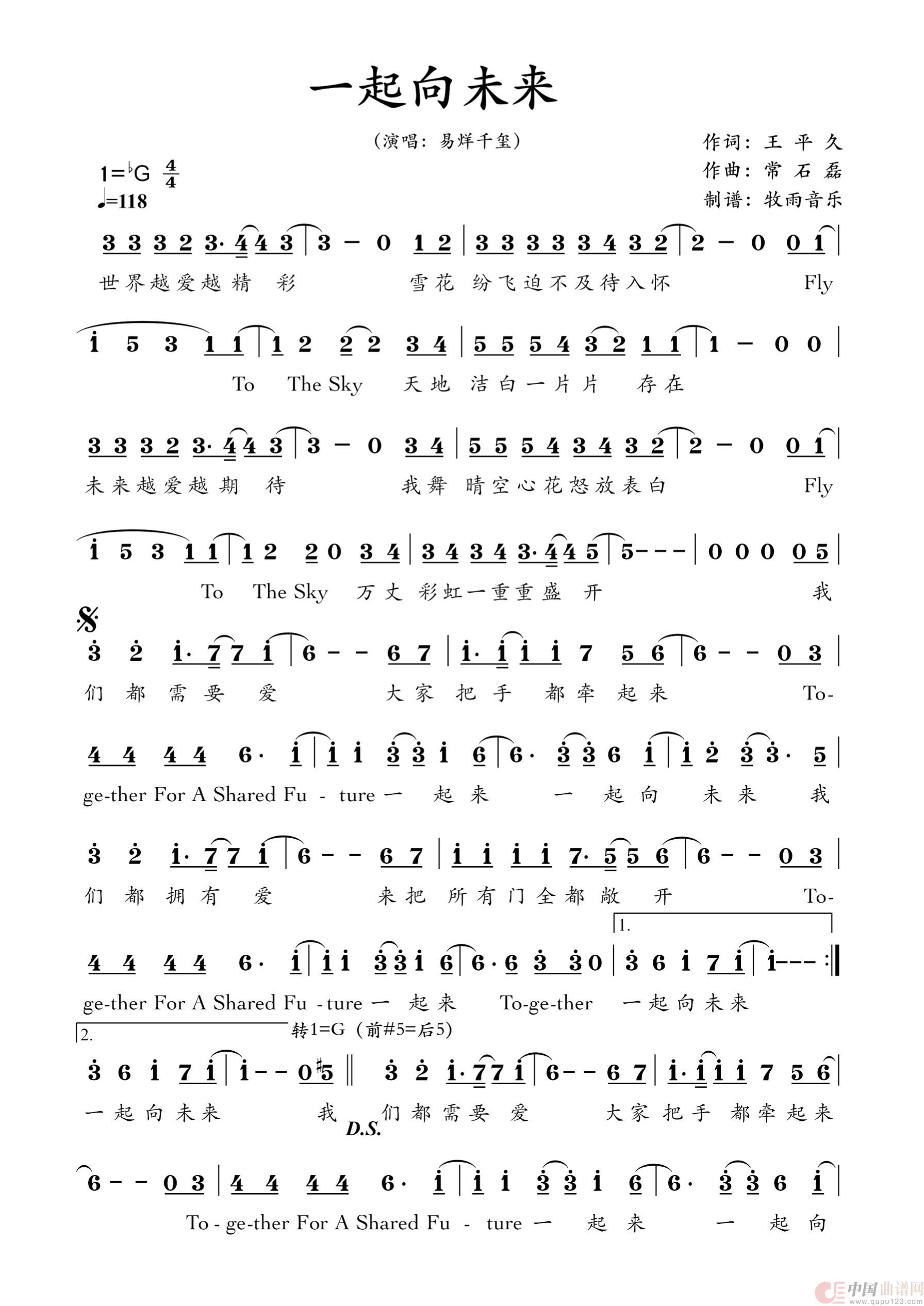 关于《一起向未来》曲谱的评论