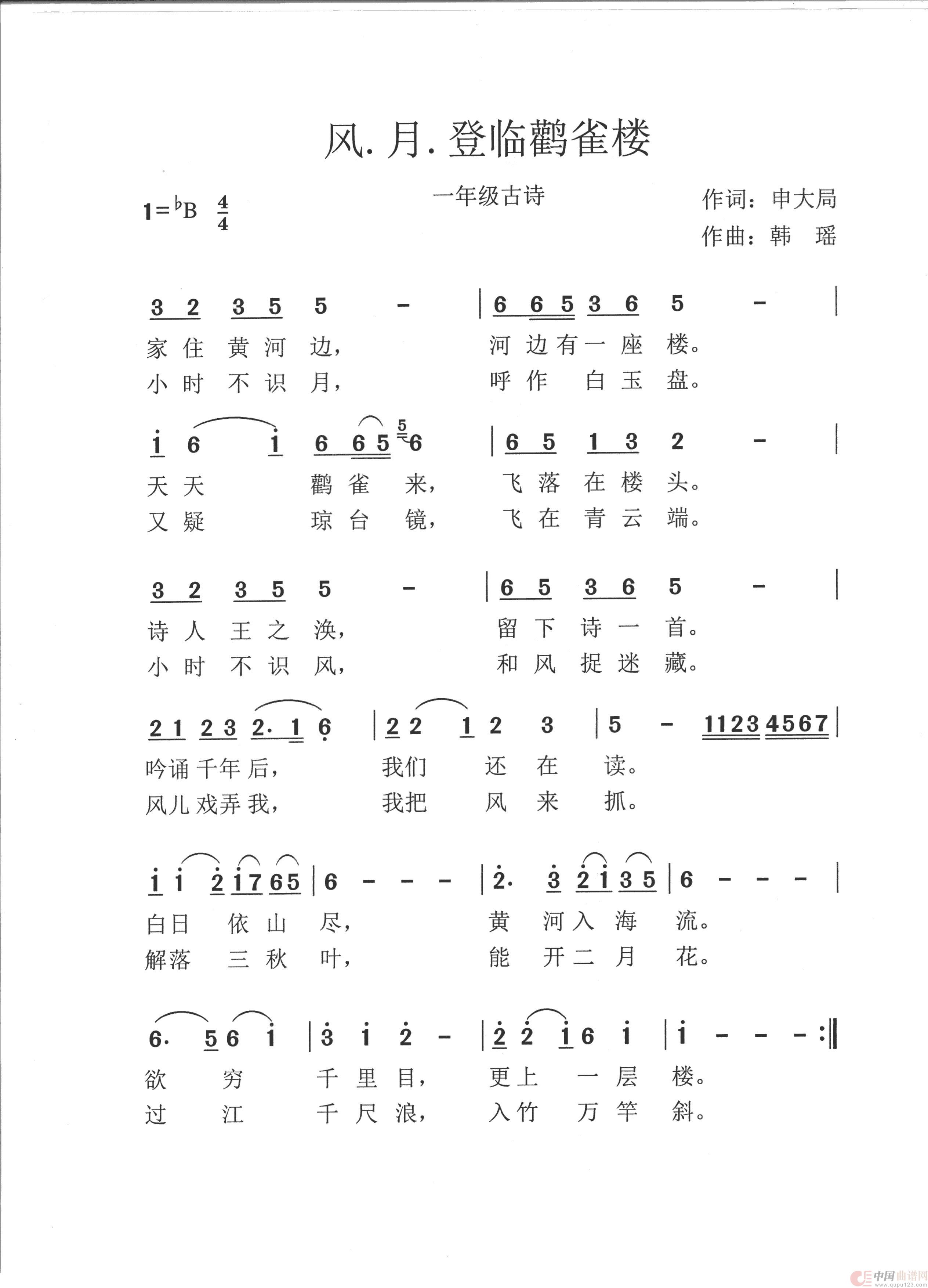 根据一年级古诗串写而成。关于《风.月.等鹳雀楼》曲谱的评论