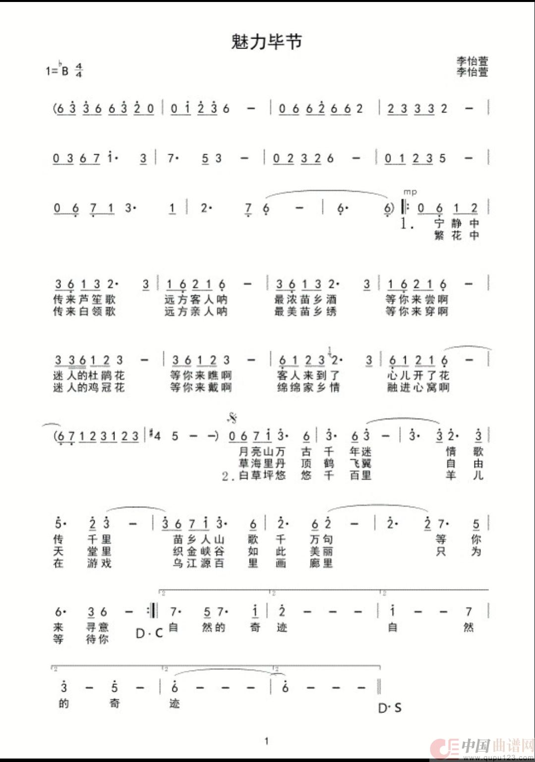 关于《魅力毕节》曲谱的评论