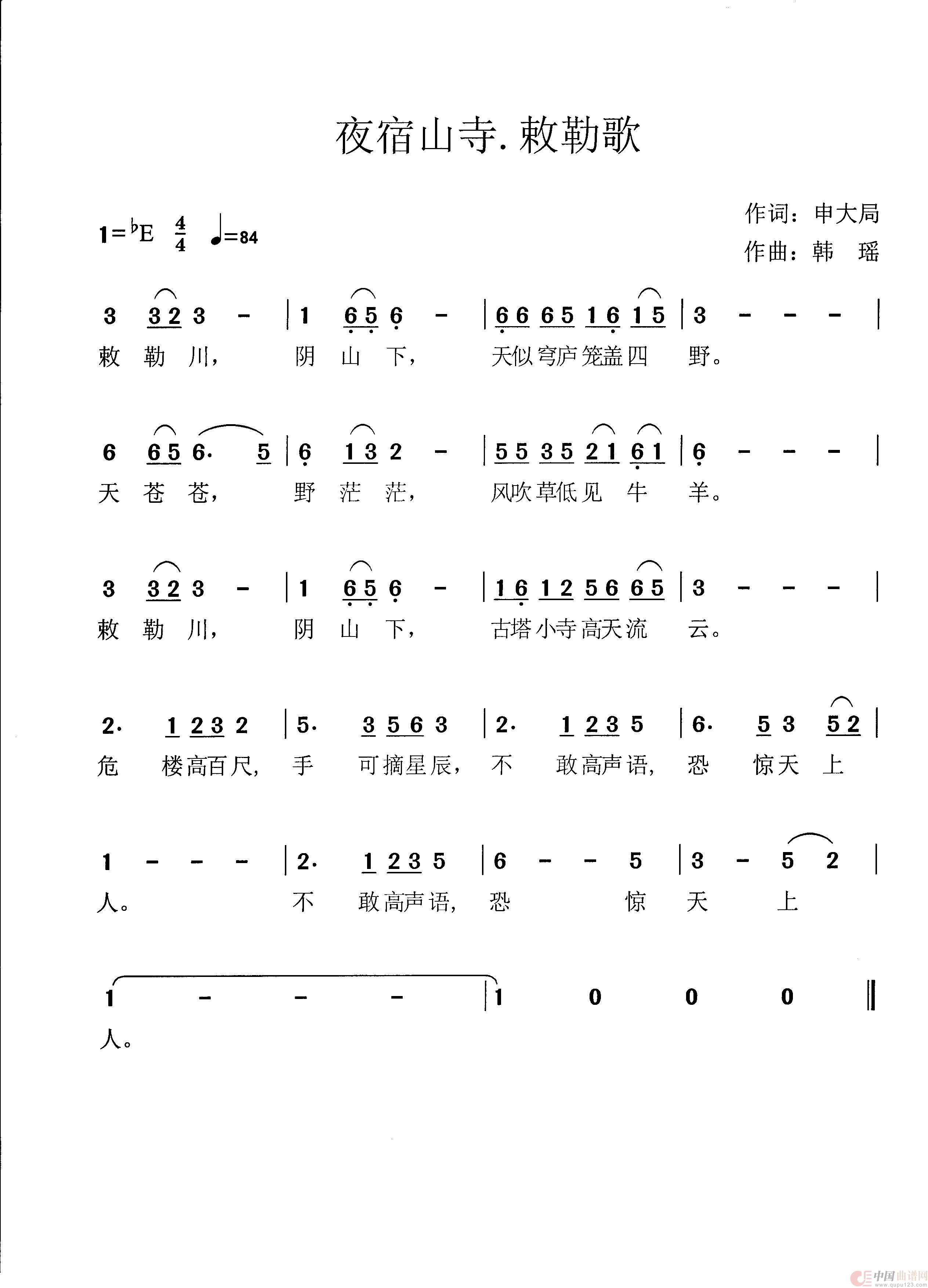 关于《夜宿山寺.敕勒川》曲谱的评论
