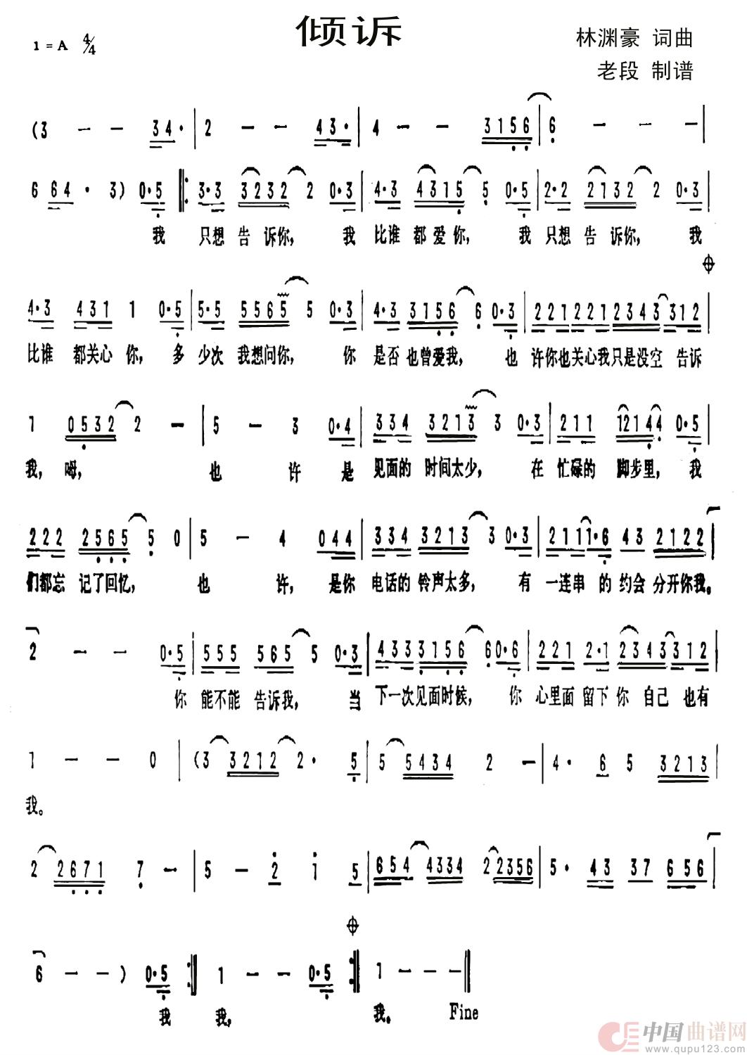 关于《倾诉》曲谱的评论
