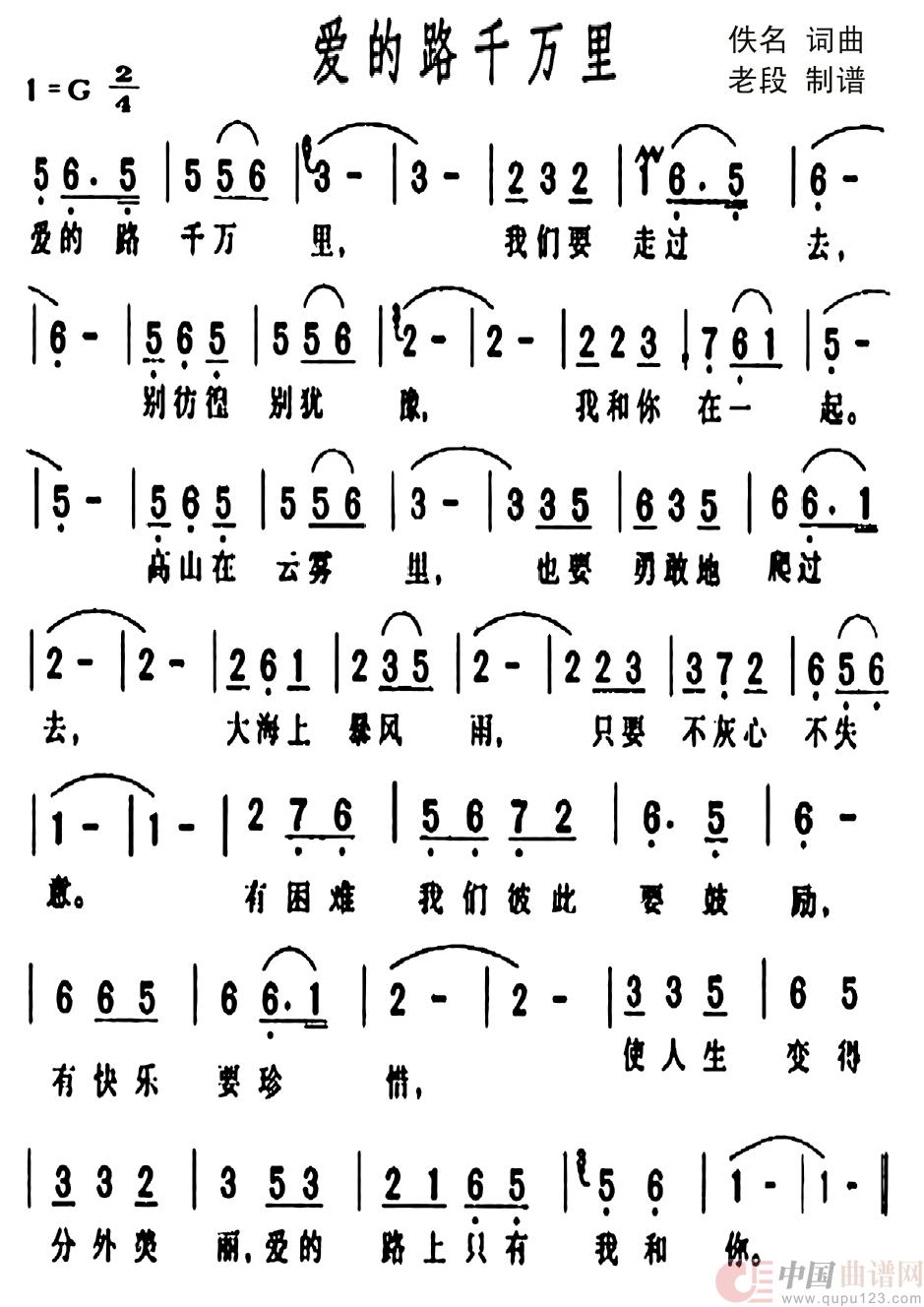 关于《爱的路上千万里》曲谱的评论