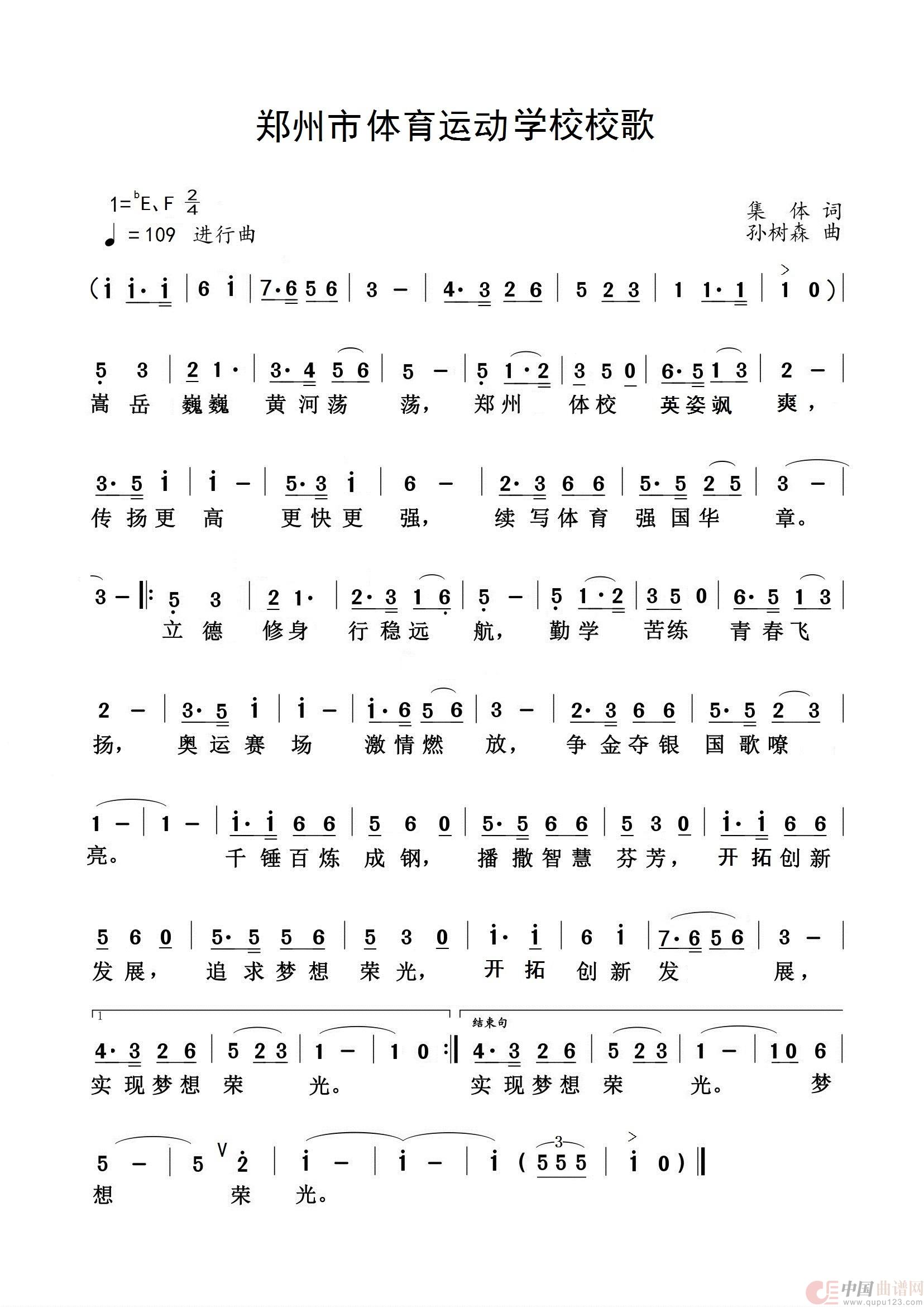 关于《郑州市体育运动学校校歌》曲谱的评论