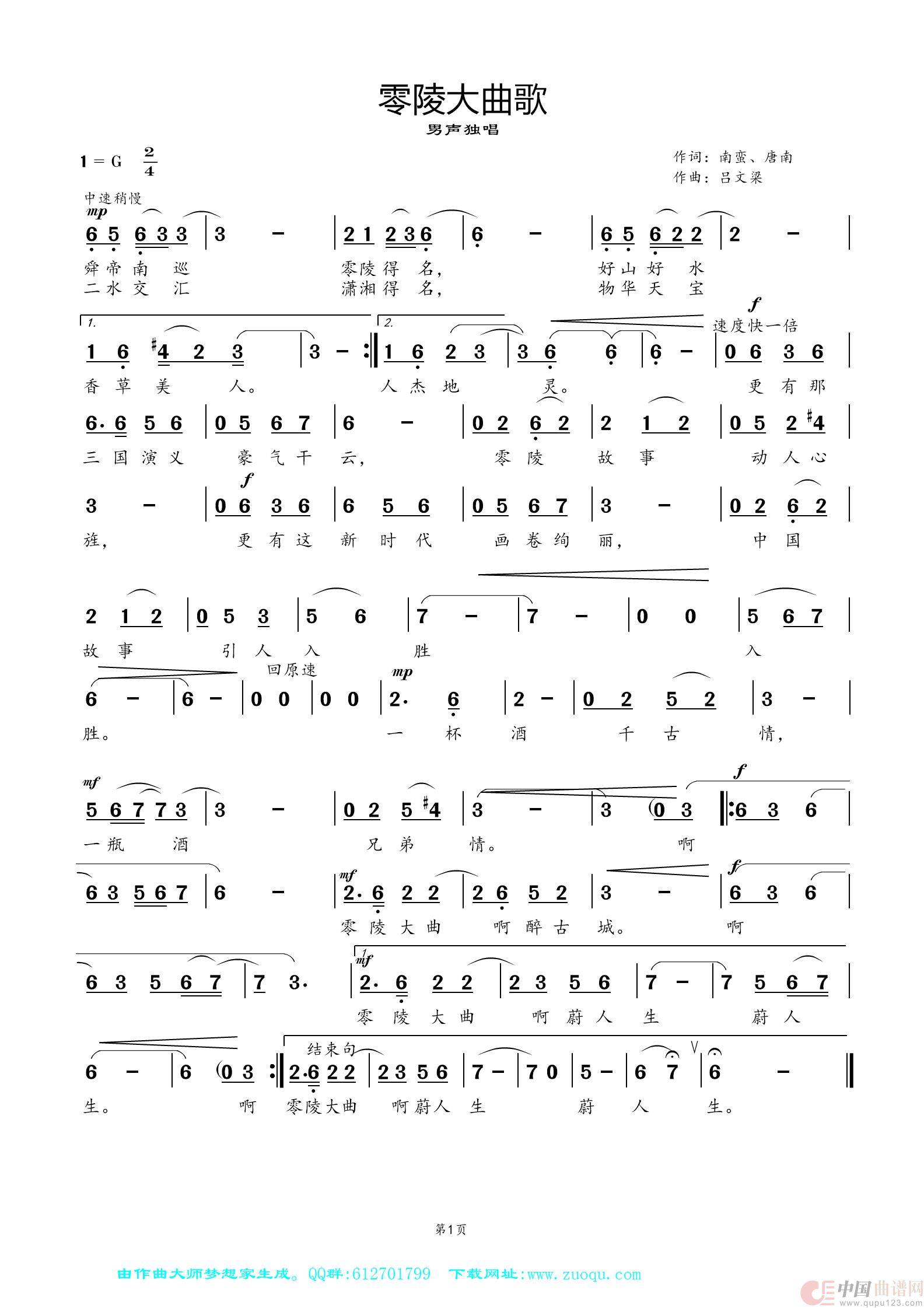 提示:在曲谱图片上单击右键,选择“图片另存为...”即可将曲谱保存到您的电脑中,打印时候可将图片插入到WORD中,调整合适大小打印即可。