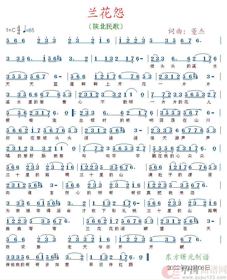 原生态的陕北民歌作品,情歌类型,为陕北悲情歌手刘妍量身定做,2022年3月6日定稿。