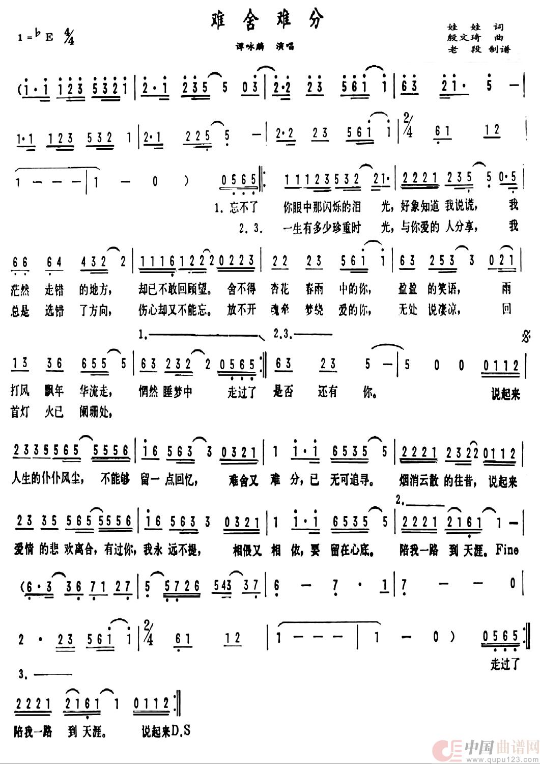 关于《难舍难分》曲谱的评论