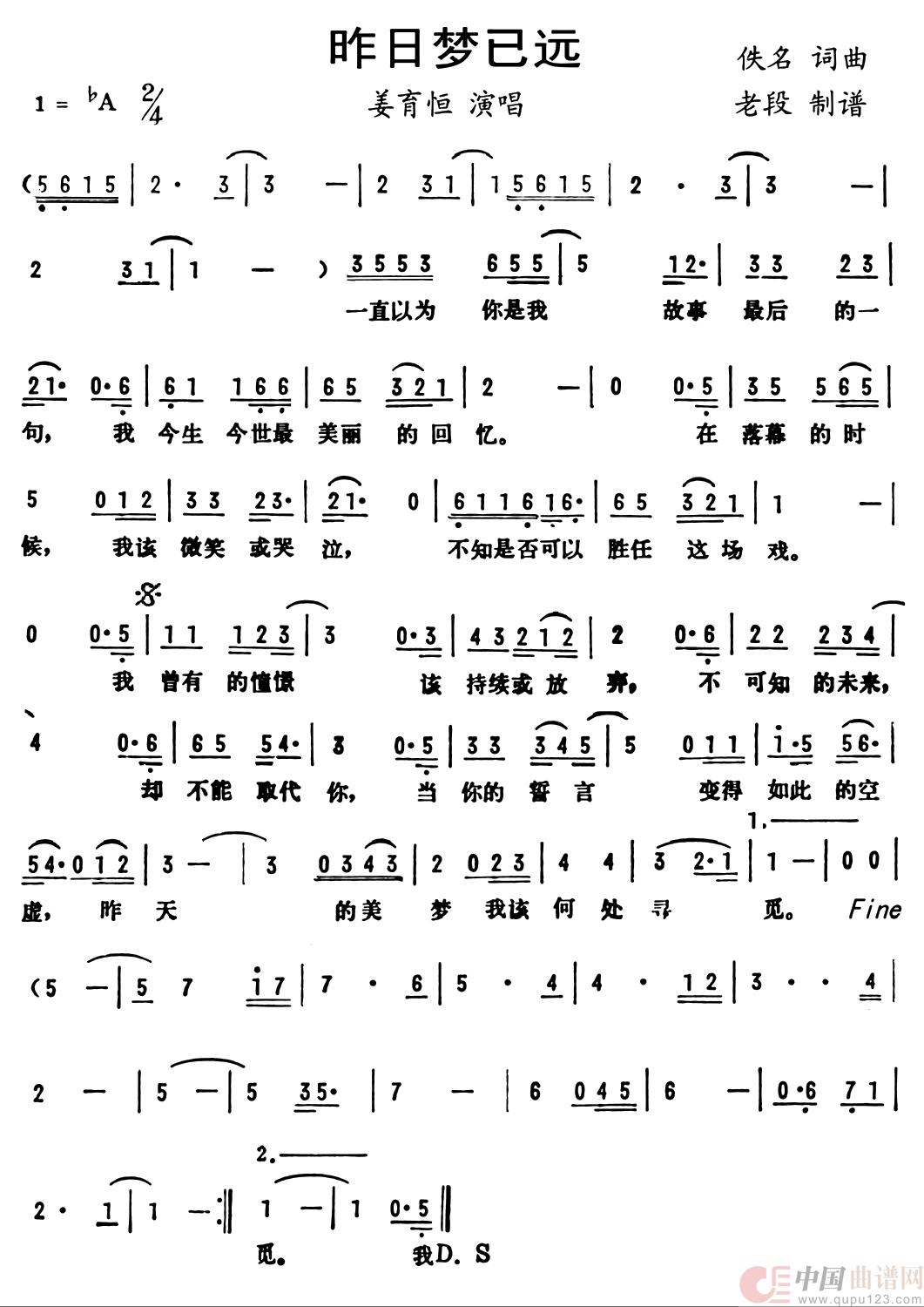 关于《昨日梦已远》曲谱的评论