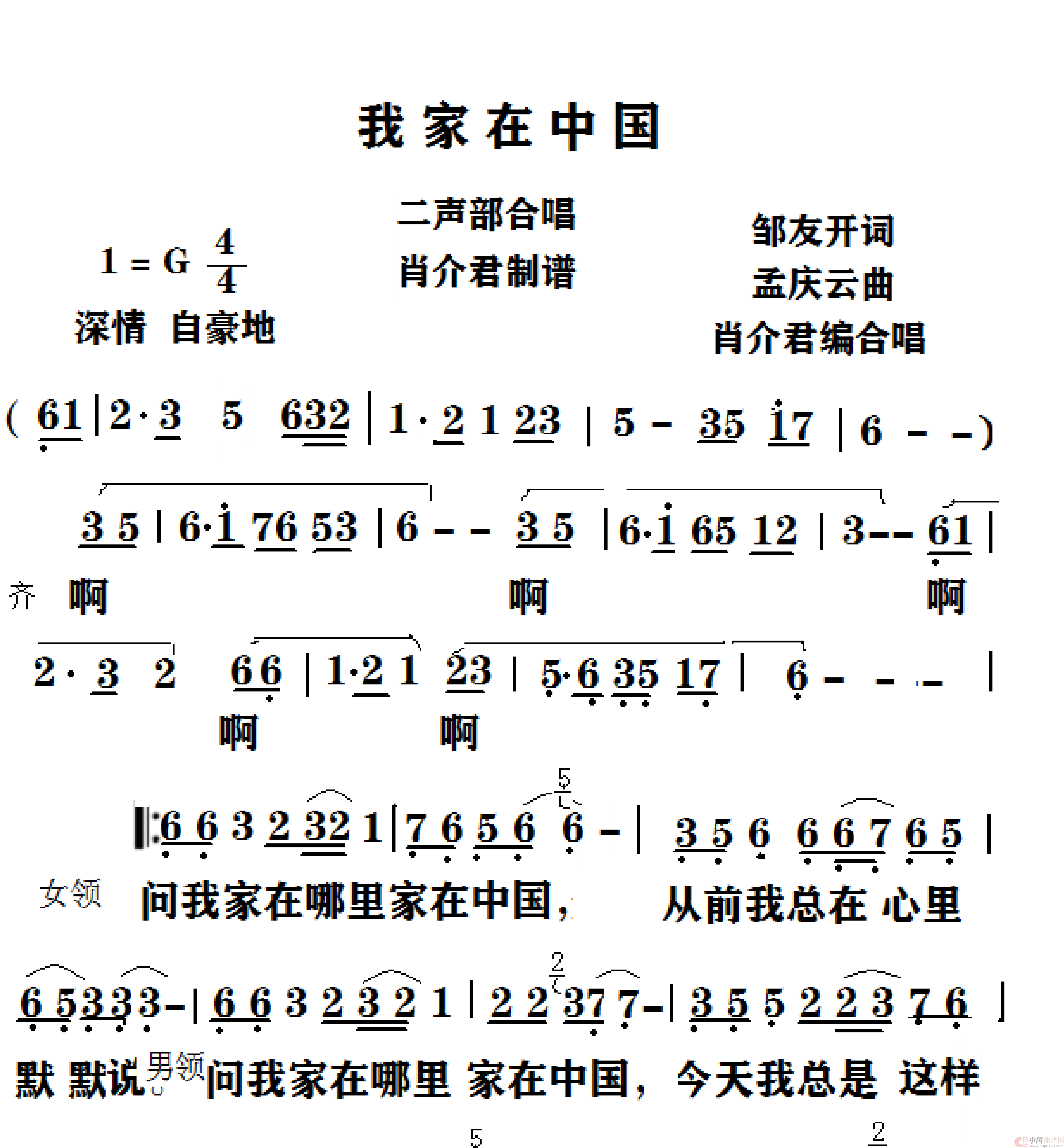 关于《我家在中国》曲谱的评论