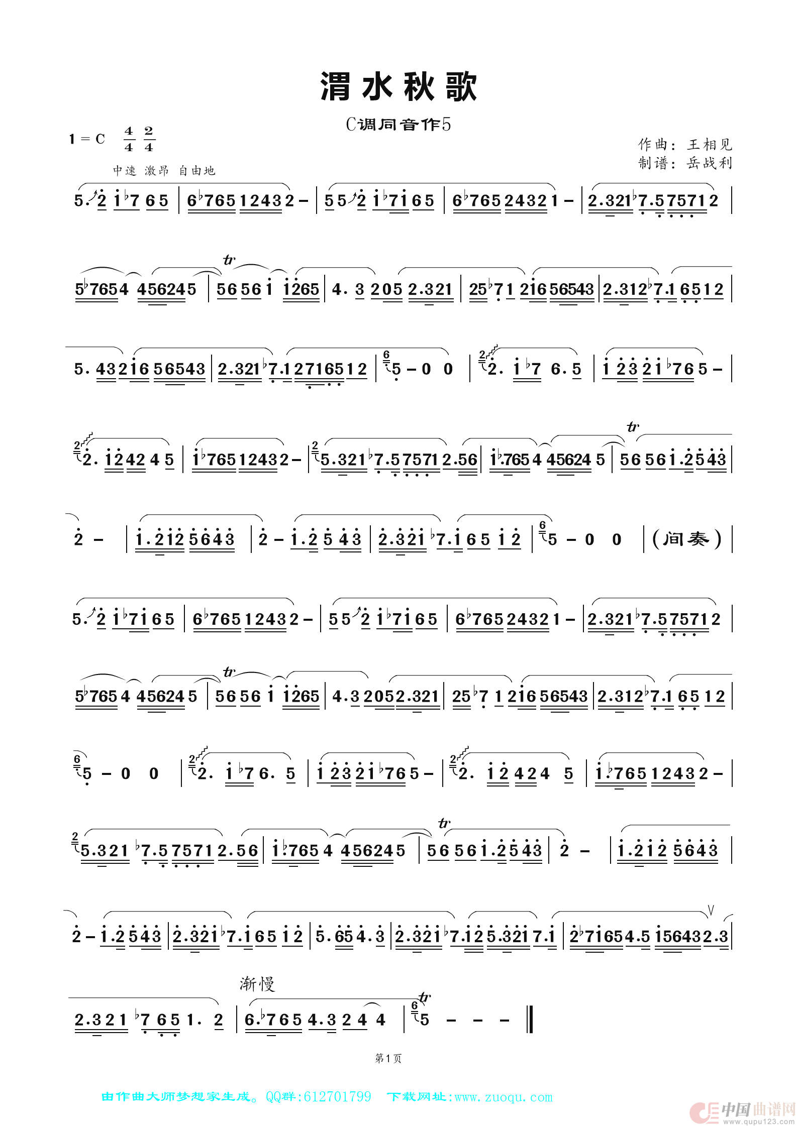 提示:在曲谱图片上单击右键,选择“图片另存为...”即可将曲谱保存到您的电脑中,打印时候可将图片插入到WORD中,调整合适大小打印即可。