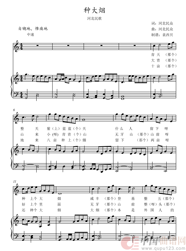 种大烟(河北民歌五线谱版)(中国近现代音乐史)