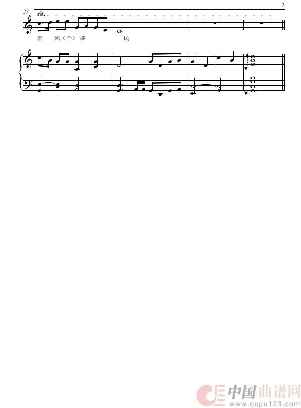 提示:在曲谱图片上单击右键,选择“图片另存为...”即可将曲谱保存到您的电脑中,打印时候可将图片插入到WORD中,调整合适大小打印即可。