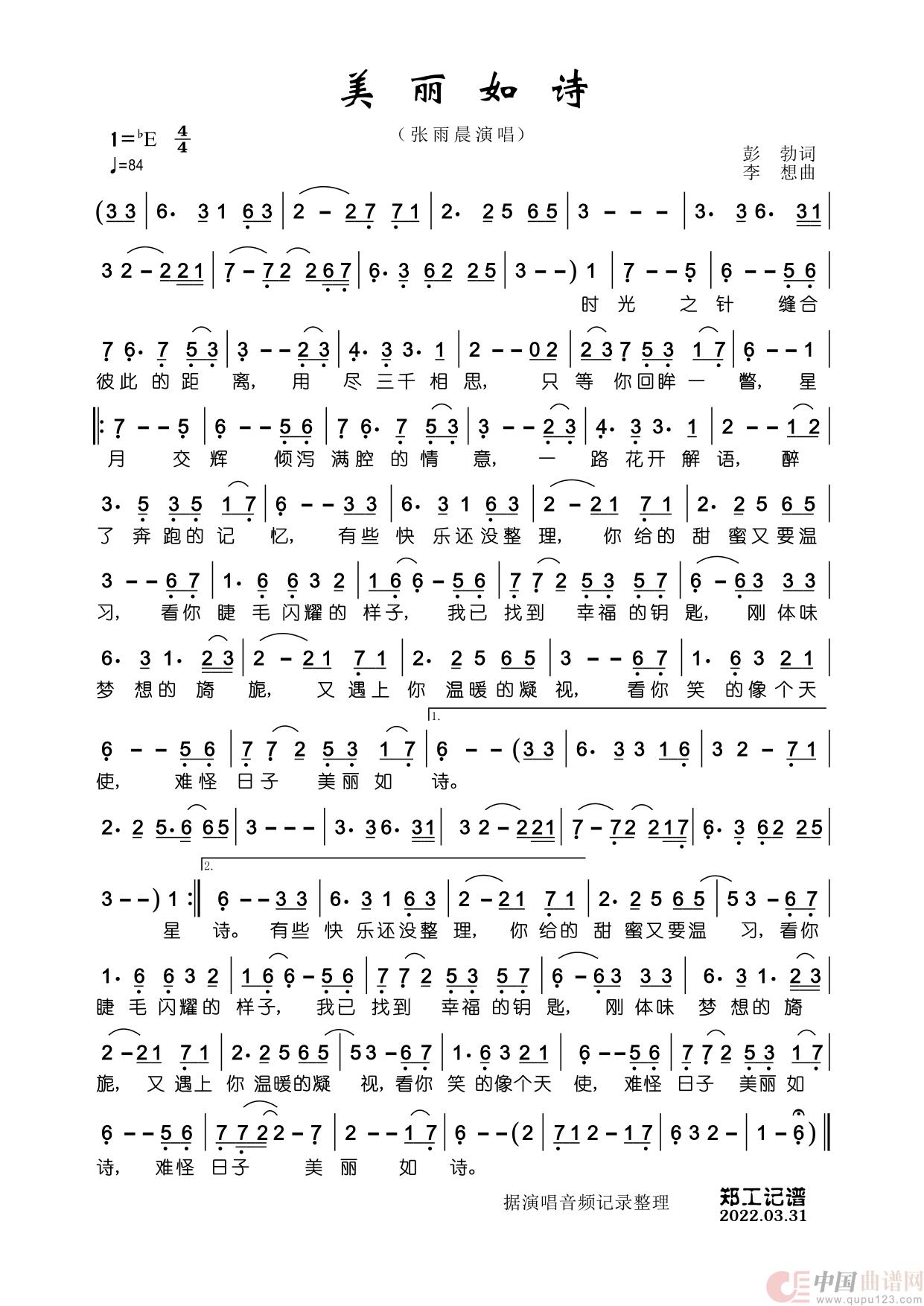 关于《美丽如诗》曲谱的评论