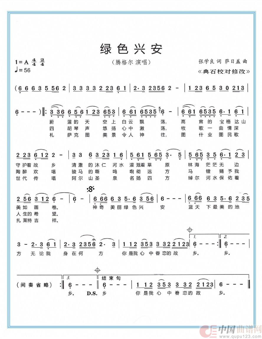 关于《绿色兴安》曲谱的评论